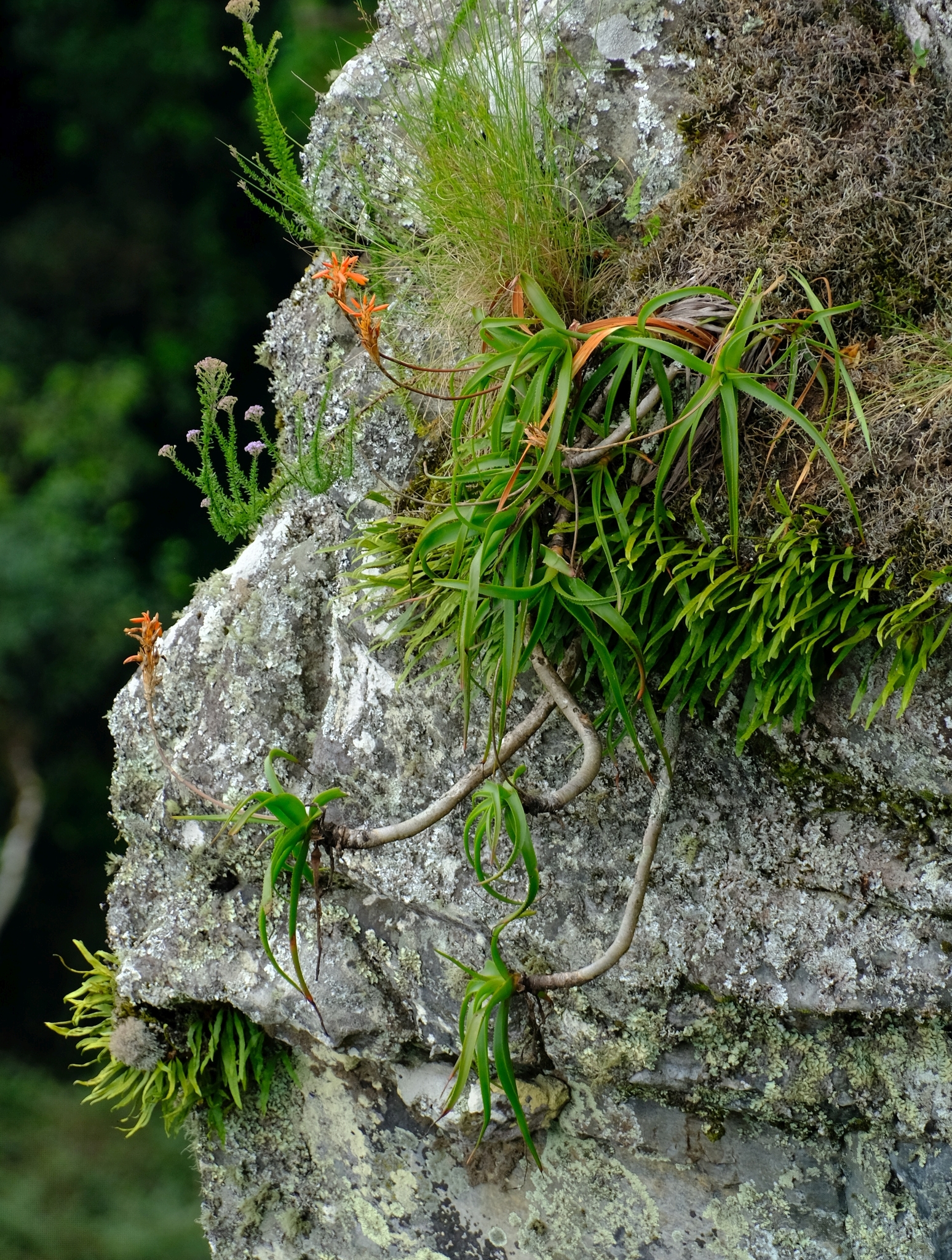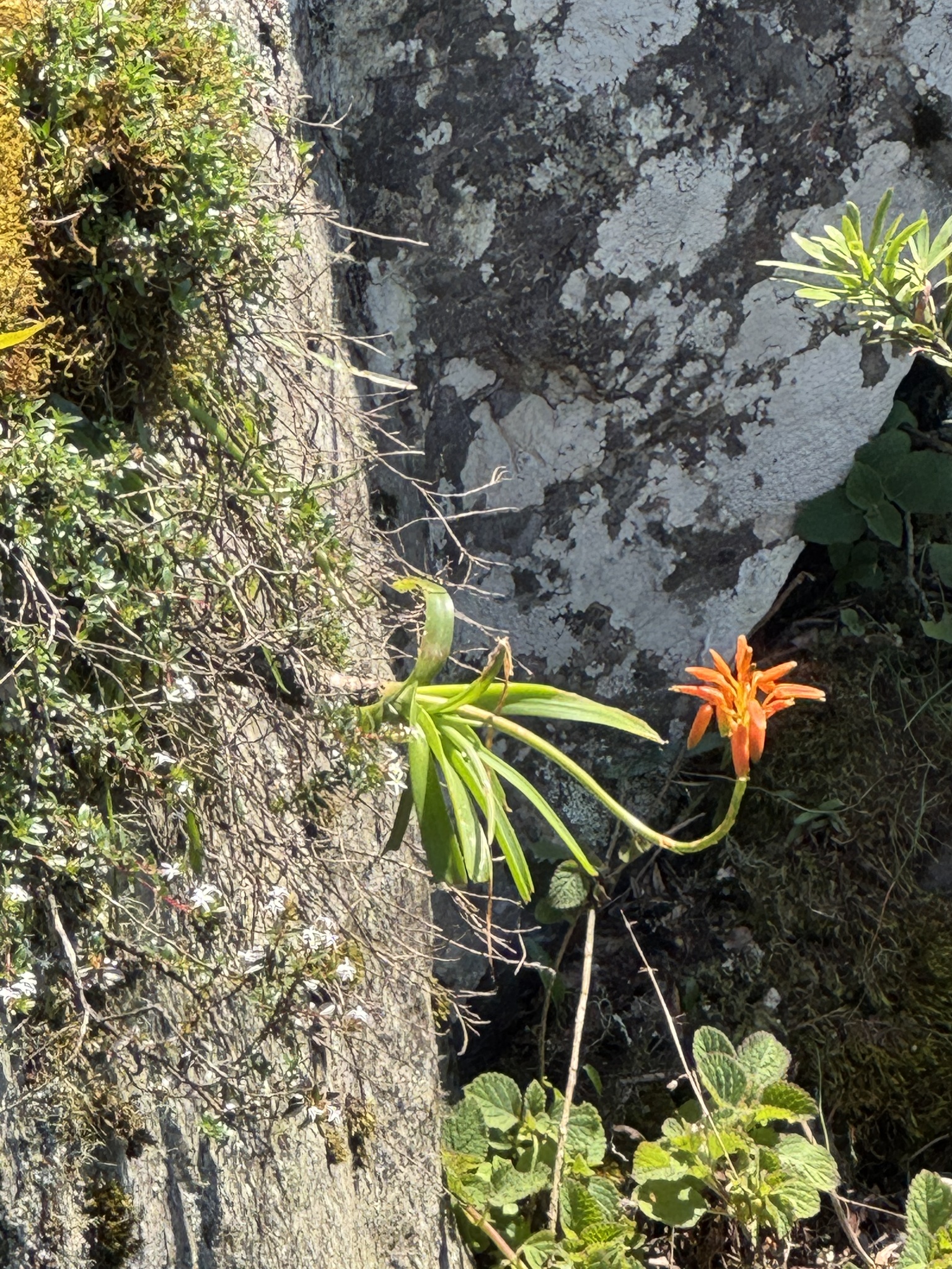 Aloe nubigena主要分布在南非Mpumalanga省的岩石草地和石英岩悬崖,海拔约1000-2000米。该种生长在干燥的热带生物群落中,常出现在岩石坡面或裂缝上,土壤贫瘠排水良好,受季风影响,雨季短暂而旱季漫长,温度高,常在20-35°C之间。植株对排水要求极高,避免积水;它常与南非其他耐旱植物共生,形成局部微生态系统。分布范围狭窄,总面积估计不到500平方公里,导致其对栖息地干扰敏感。