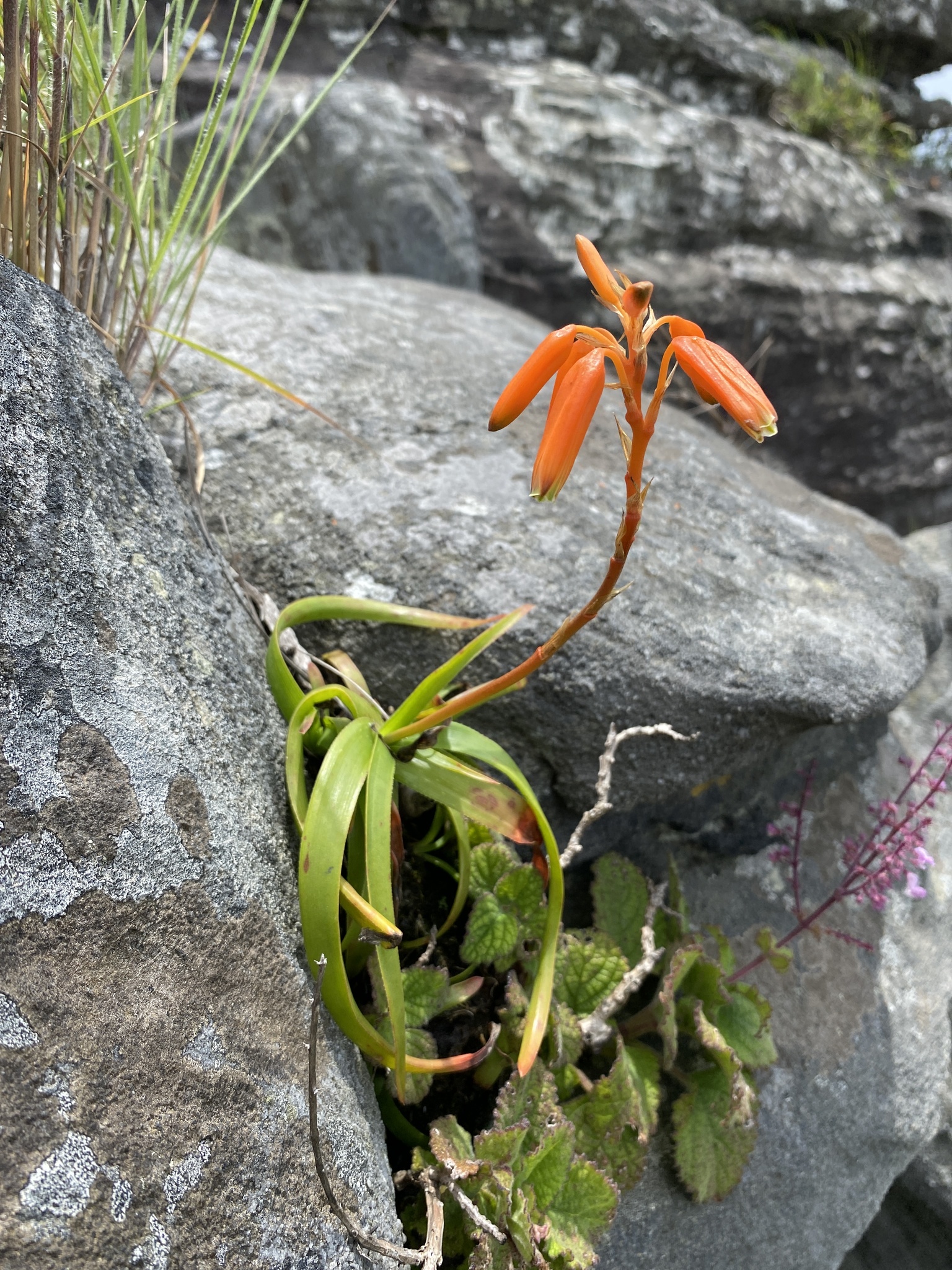 是一种南非特有芦荟属植物,原产于Mpumalanga省的岩石草地和石英岩悬崖。它是一种小型、多肉植物,以其柔软浅绿色叶片和冬季鲜红色花序而闻名。该物种于1990年由Groenew首次描述,种名“nubigena”源自拉丁语,意为“云生的”,反映其高海拔栖息地。作为一种岩生适应植物,它生长在干燥的热带生物群落中,适合作为观赏芦荟栽培,尤其在岩石花园或容器中,但野生种群易受栖息地破坏影响,已被评估为无危。