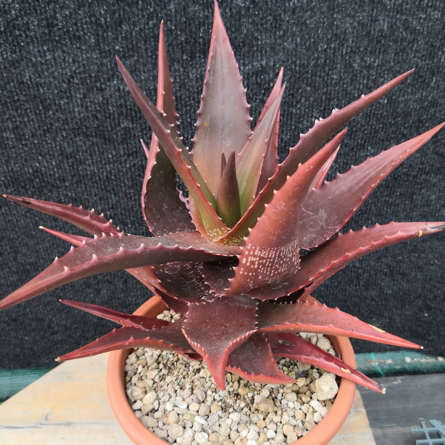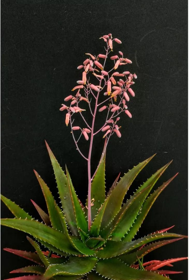 Aloe classenii通常为低矮丛生植物,高约15-45厘米(6-18英寸),茎爬行,不直立,形成莲座状叶丛,直径约20-40厘米(8-16英寸)。叶片约10-20片,僵硬、几乎塑料般的质感,亮绿色,长约10-20厘米(4-8英寸),宽4-6厘米(1.6-2.4英寸),表面光滑蜡质,无斑点;在干旱或强光下呈红色调;边缘有小而尖锐的棕色齿刺,长约1-2毫米,间隔5-10毫米。叶片排列成开放的莲座状。花序从叶丛中心伸出,高约30-50厘米,不分枝或少分枝;总状花序圆柱形,长约15-25厘米(6-10英寸);花朵深粉色,长约2-3厘米(0.8-1.2英寸),管状密集排列。花期主要在南半球冬季(约6-8月)。果实为蒴果,长圆形,长约2厘米,直径1厘米;种子有翅。植株整体生长缓慢,长寿,变异性主要在叶色从亮绿到红调,取决于环境。