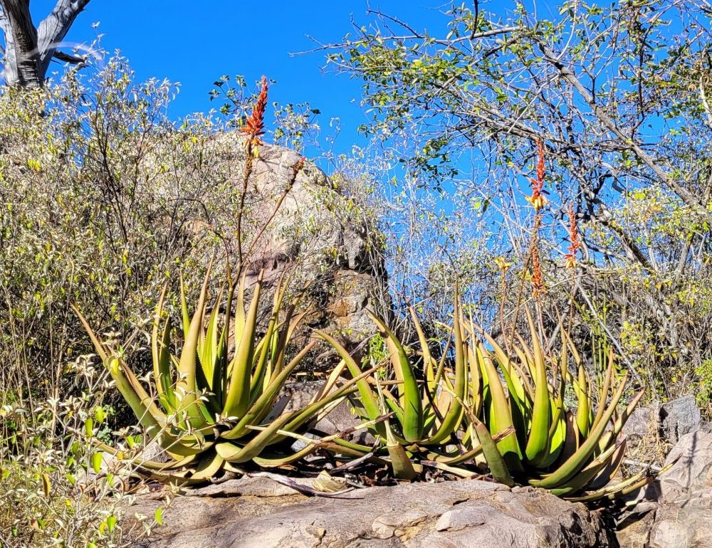 Aloe lutescens主要分布在南非北部、津巴布韦南部、博茨瓦纳和莫桑比克的干燥热带地区,包括岩石坡地和灌木丛,海拔约100-500米。该种生长在季节性干燥的热带生物群落中,常出现在岩石坡面或裂缝上,土壤贫瘠排水良好,受季风影响,雨季短暂而旱季漫长,温度高,常在20-35°C之间。植株对排水要求极高,避免积水;它常与南部非洲其他耐旱植物共生,形成局部微生态系统。分布范围狭窄,总面积估计不到500平方公里,导致其对栖息地干扰敏感。
