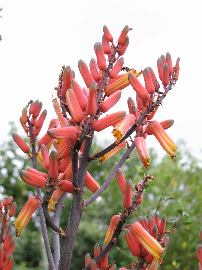 是一种乌干达西部特有的芦荟属(Aloe)多肉植物,拉丁名 Aloe butiabana 由植物学家 T. C. Cole 与 T. G. Forrest 于 2011 年在《Cactus and Succulent Journal》上正式描述,种加词 butiabana 指其最初采集地 Butiaba(布提阿),靠近 维多利亚湖/阿尔伯特湖区域。该物种习性为直立丛生或短茎状多年生肉质草本,叶片长而肉质,花序大且分枝,花色橙红至黄色,是乌干达湖畔干旱草原与石质坡面生态系统的一部分,目前被 IUCN 评估为易危(Vulnerable),并受 CITES 附录 II 贸易管制。