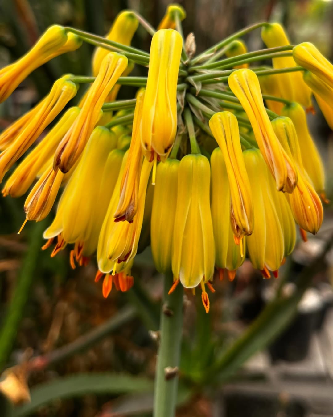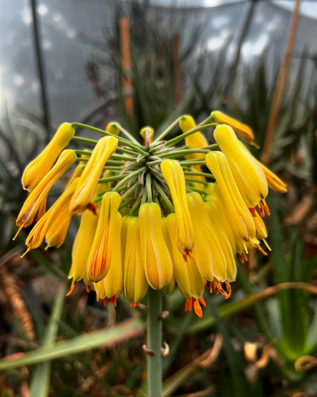 叶片排列向外扩展,从中心抽出花序,虽具体花序形态在权威文献中尚未详细公开,但园艺和栽培界反馈常见为色彩对比明显的黄色和红色混合花序,可能呈总状或短顶生状。