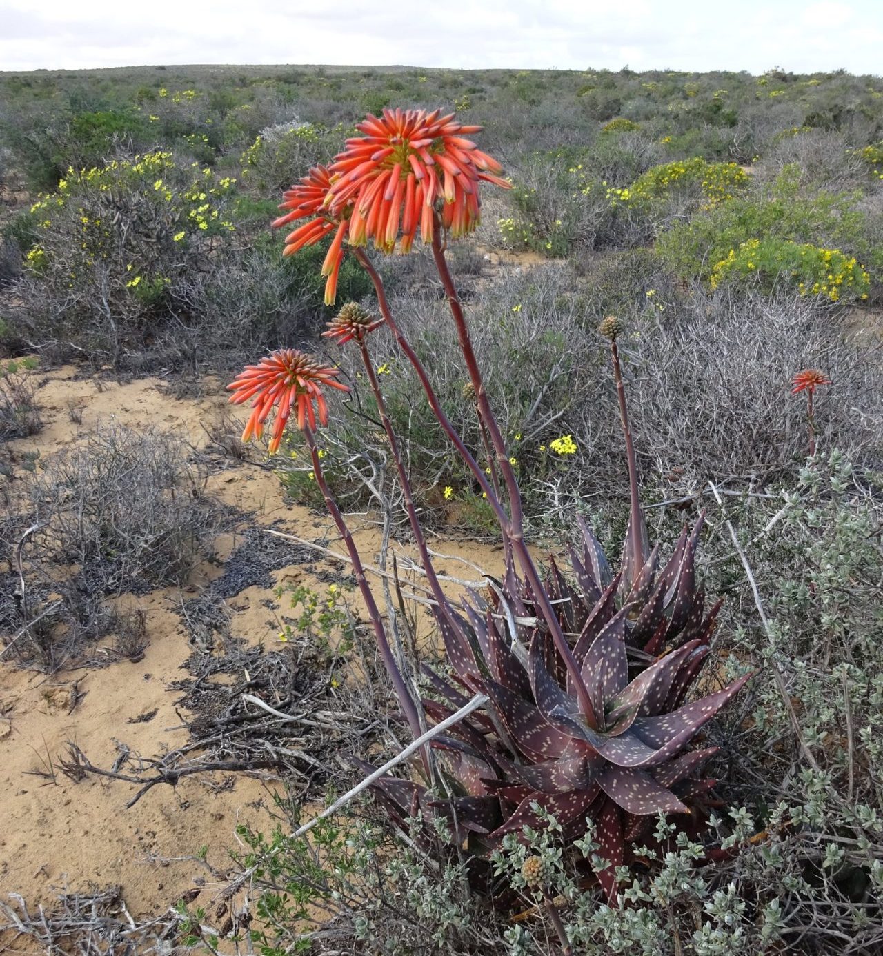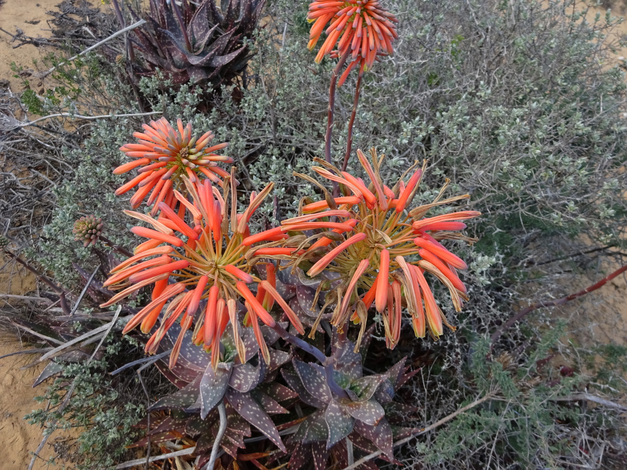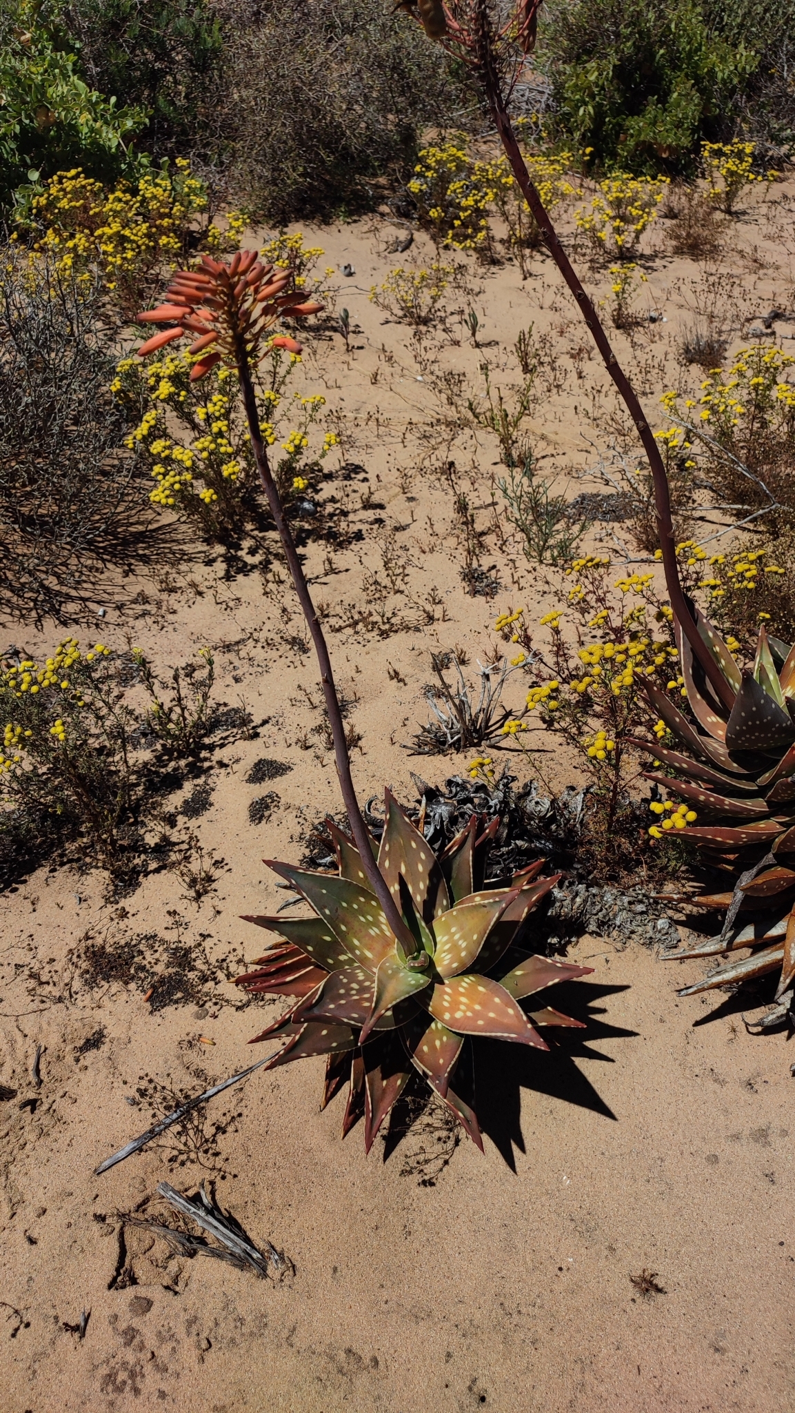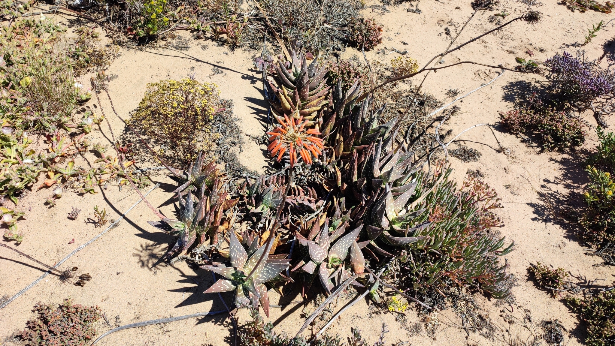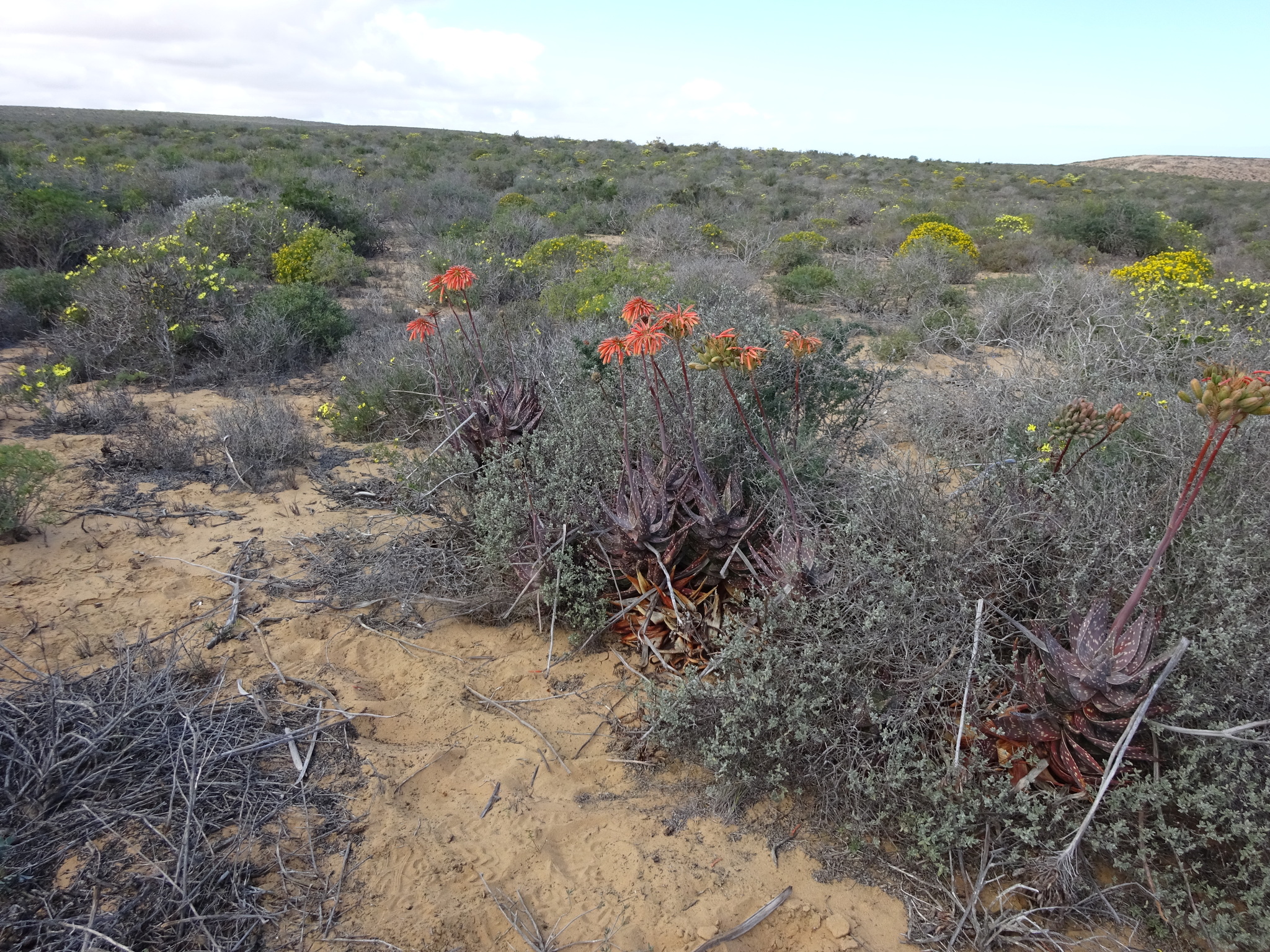 Aloe arenicola 原生于南非北开普省与西开普省沿大西洋海岸的干旱沙质平原,分布范围约沿海岸线延伸 400‑500 km,从 Lambert’s Bay 向北至纳米比亚边境一带。这是一个极端干旱、冬季降雨型气候区,土壤主要为深厚的沙质沉积物。该地区的环境具有两个关键支撑因素: