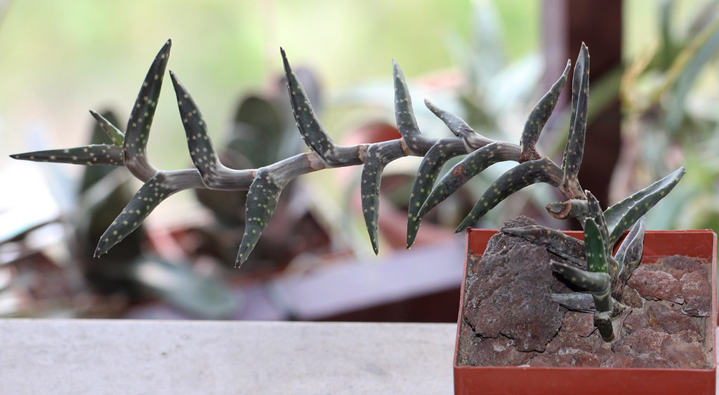 Aloe arenicola 是一种匍匐或低矮扩展型的芦荟,随着年龄增长会形成密集的茎状簇丛,植株横向扩展明显: