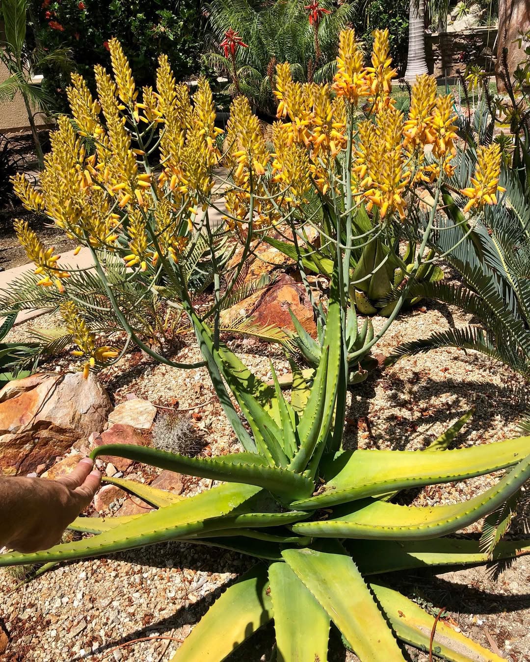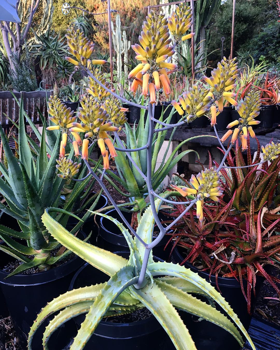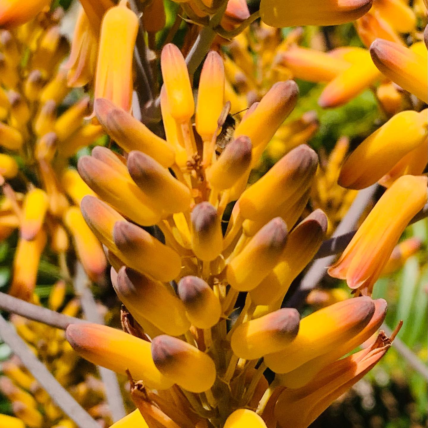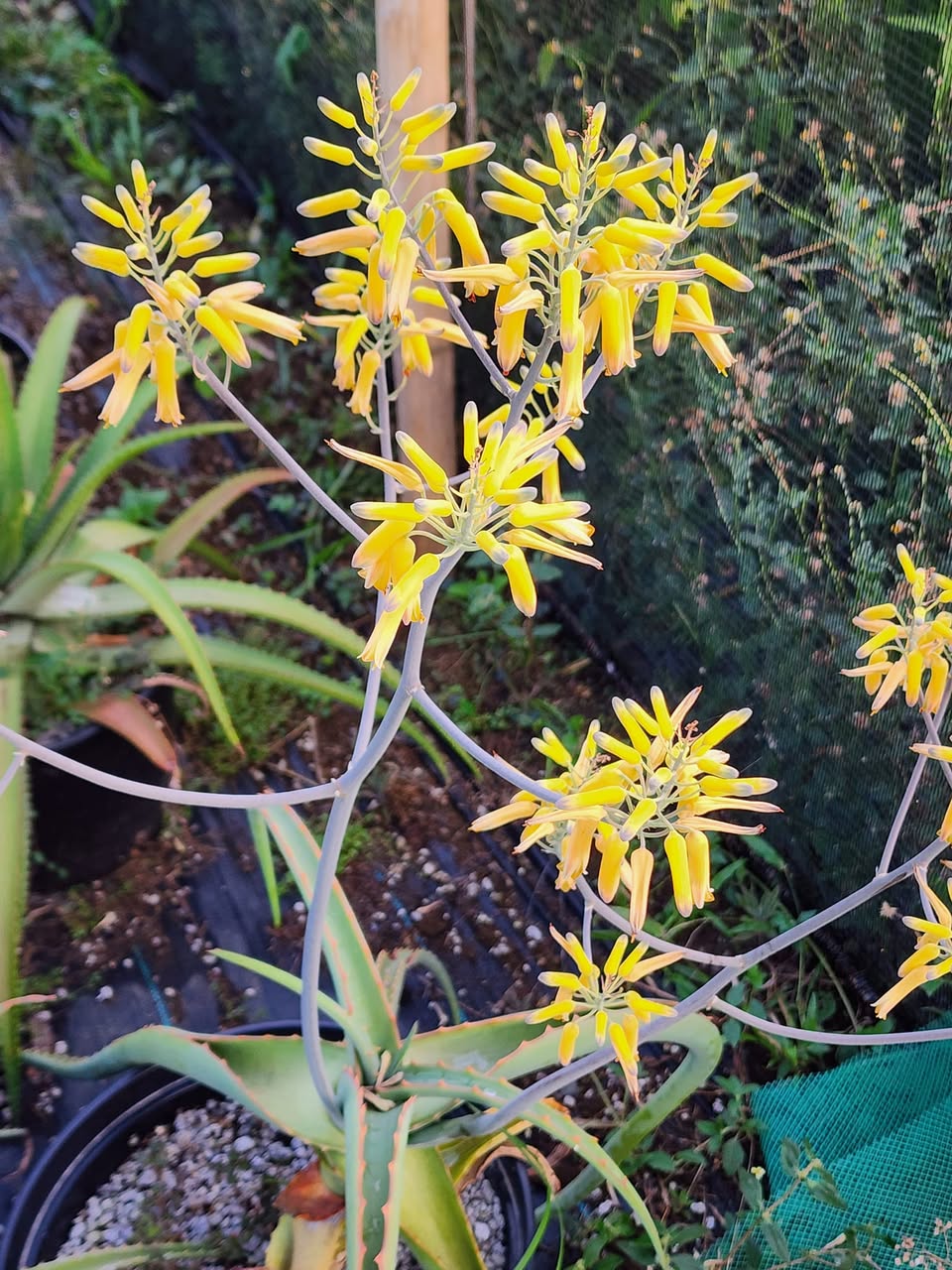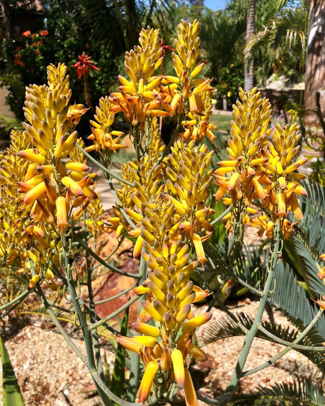 花序直立且多分枝,高可达约 50–100 cm,花序顶端密生圆锥状花穗。花朵色彩可为橙红色、黄色甚至深红色,为当地传粉昆虫提供显眼视觉信号。