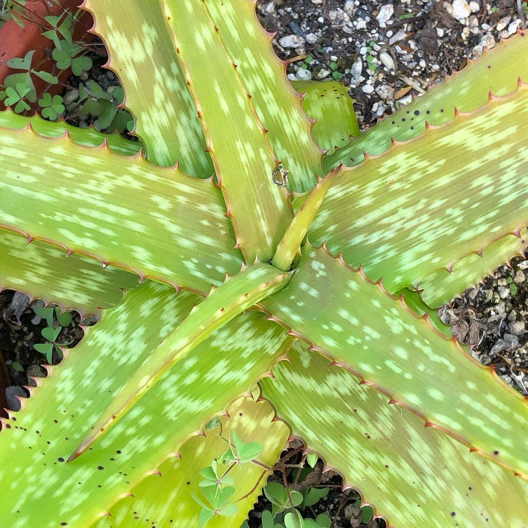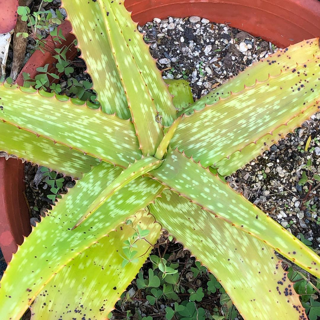 叶片表面通常有白色不规则斑点,横向分布或略呈条纹状,这也是其在众多南非芦荟中较易识别的特点之一。莲座通常较宽展,使整体株形略偏扁平而非直立。