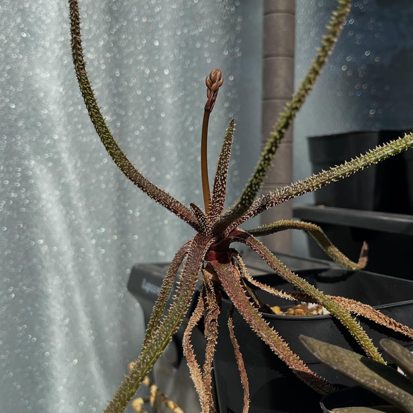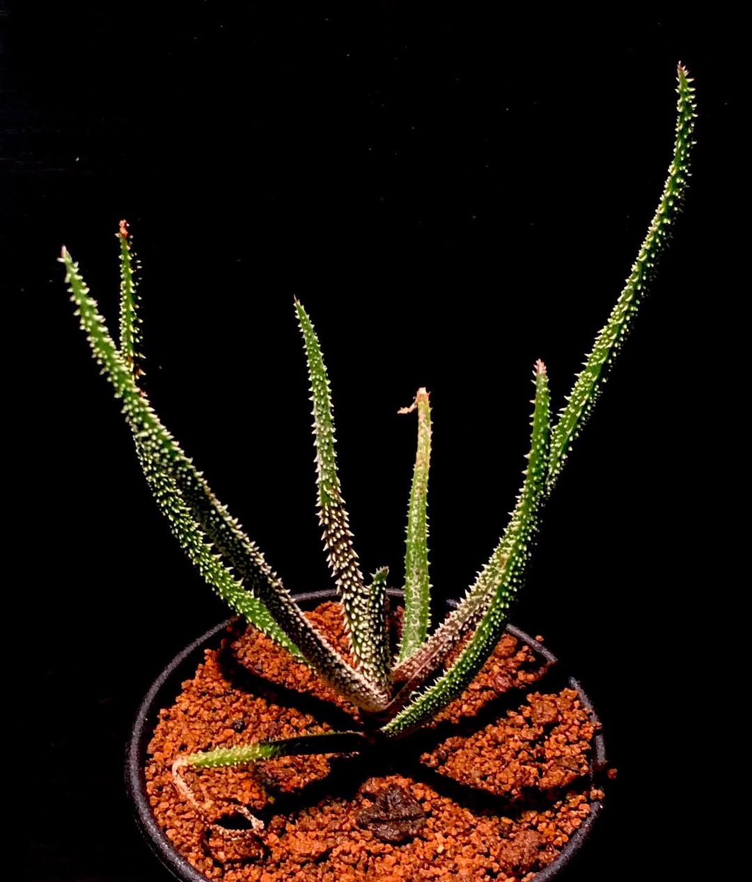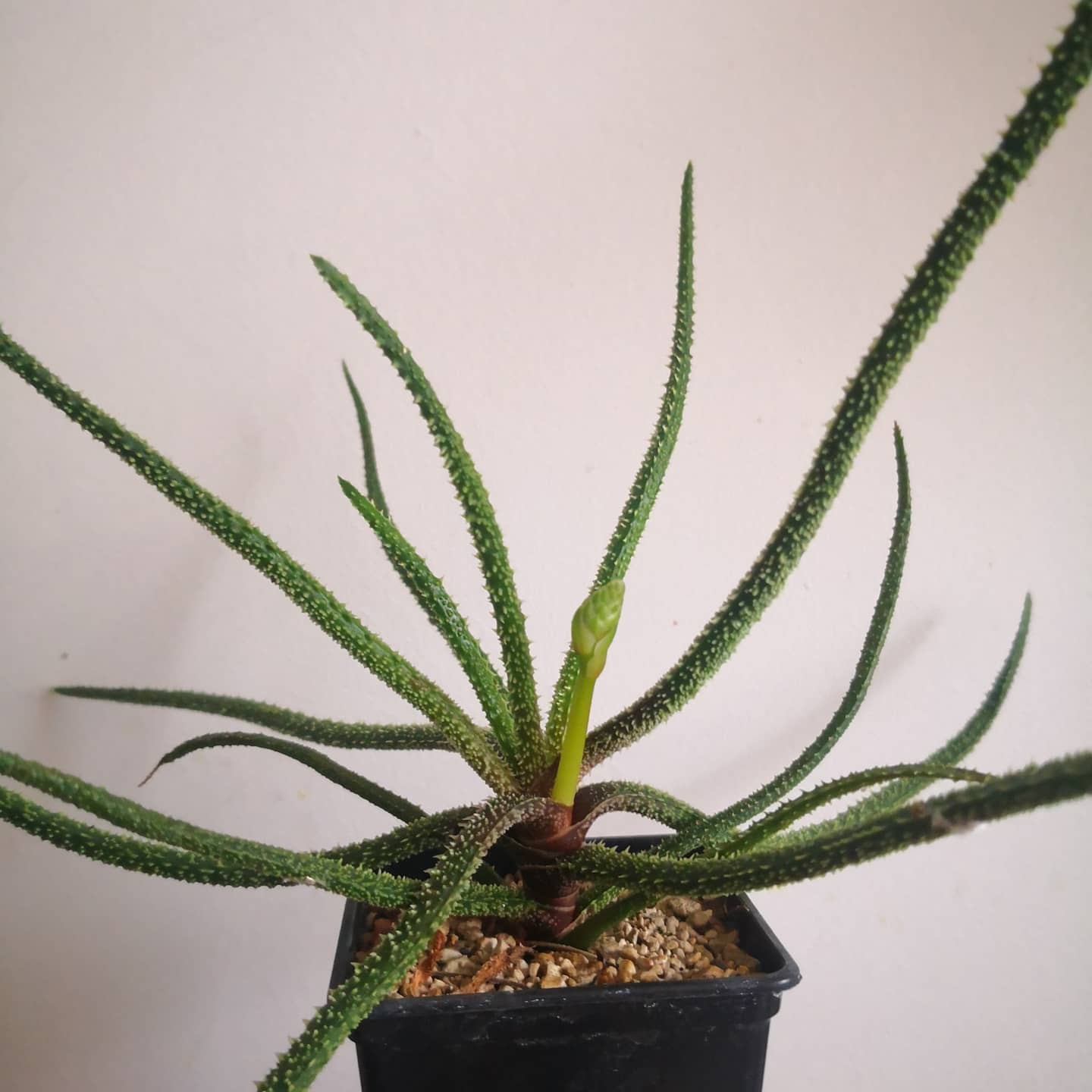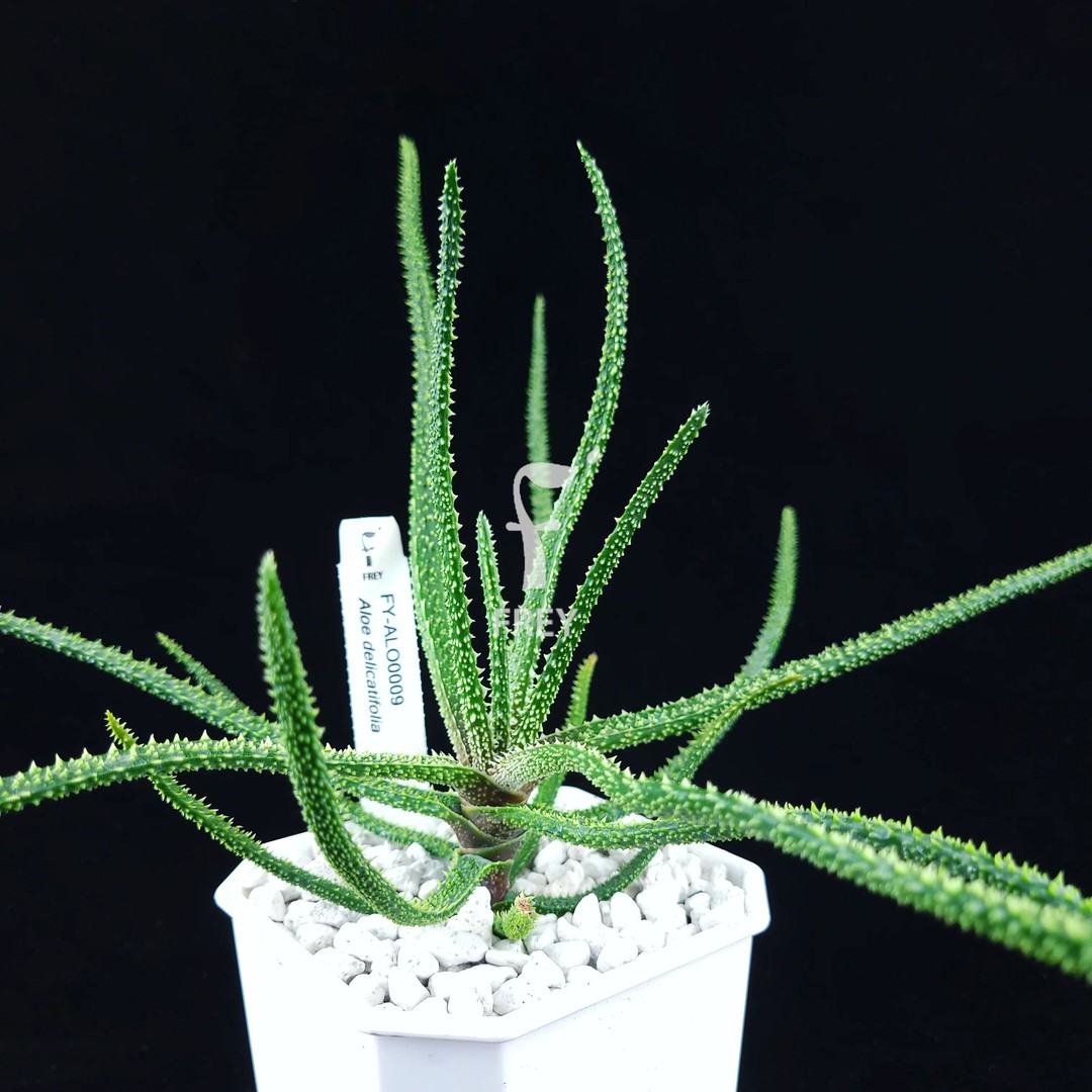 Aloe delicatifolia 是一种原生于马达加斯加中部与南部干旱地区的独特芦荟物种,属于天门冬科(Asphodelaceae)芦荟属。与多数芦荟叶片厚重、宽大不同,这种植物的叶片纤细、优雅且形态柔美,呈现出几乎如草般的细长叶状,因此常被园艺爱好者称为 “精致叶芦荟”(Delicate‑Leaf Aloe)。成熟植株低矮、莲座状且呈蔓延状,冬季抽出细长花梗绿‑橙色花序,配合其柔美叶形,显得既独特又精致。该种是马达加斯加特有的本土多肉植物,适合干旱岩石园或多肉组合盆栽。