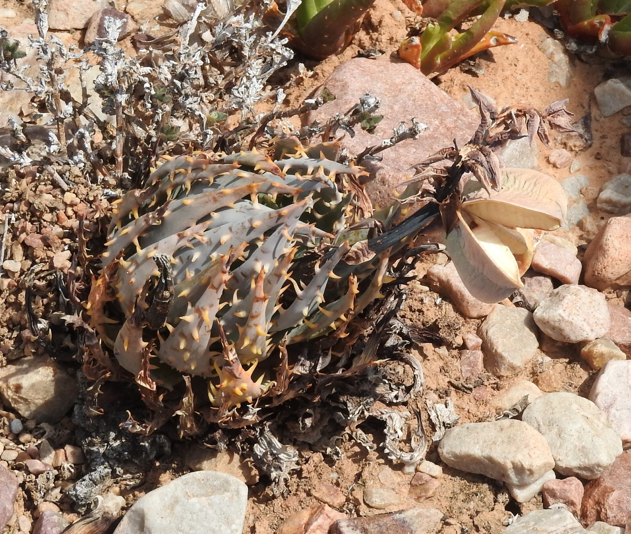 Aloe longistyla 是一种原生于南非西部和东部开普省半干旱地区的矮生耐旱多肉植物,属于天门冬科(Asphodelaceae)芦荟属。作为典型的荒漠芦荟,它体型小巧、叶簇紧密,但在冬季开放的大型管状花朵和显眼的长花柱使它成为园艺爱好者眼中的珍品。英文常见称为 Karoo Aloe 或 Ramenas Aloe,其种加词 longistyla就意味着“花柱很长”,强调开花时独特的花朵结构。自然环境里,这种芦荟适应了高温、少雨和宽幅温差的环境,是干旱生态系统中典型的耐旱物种首次该种名首次由英国植物学家 John Gilbert Baker 于1880年正式描述,并被接受为有效学名。