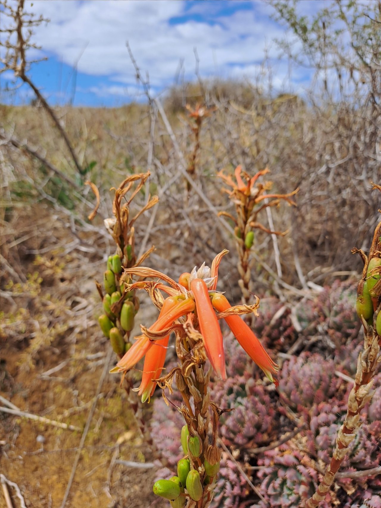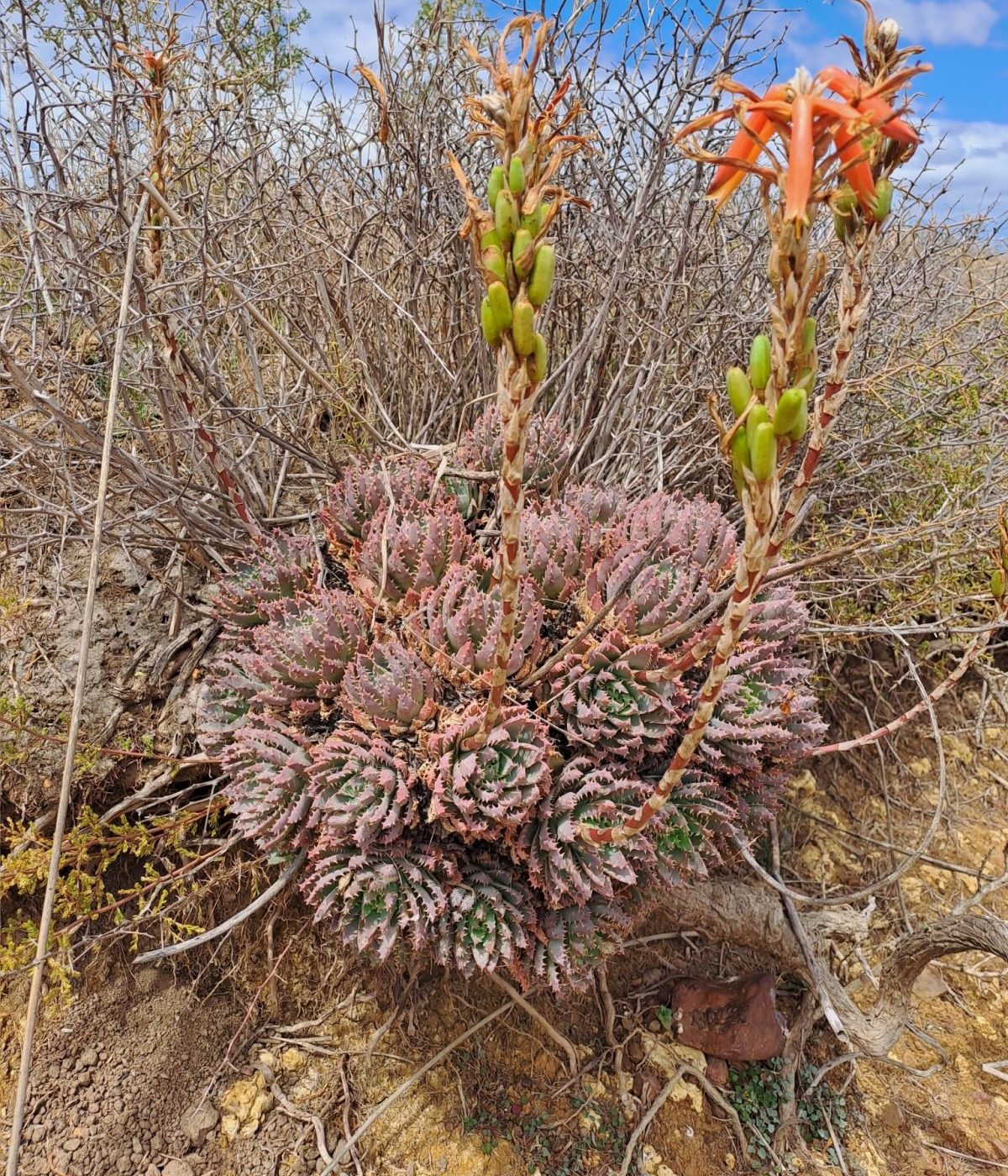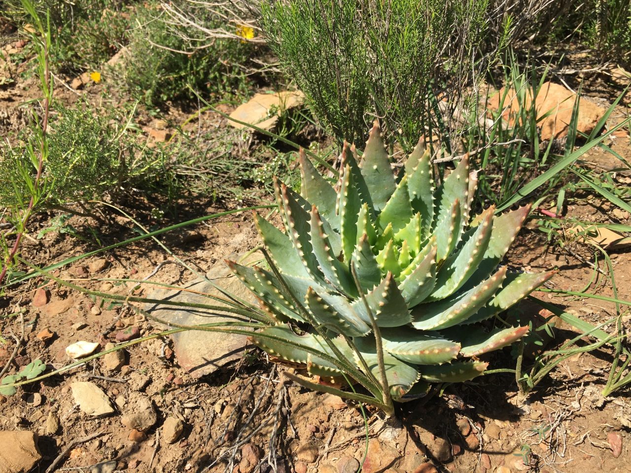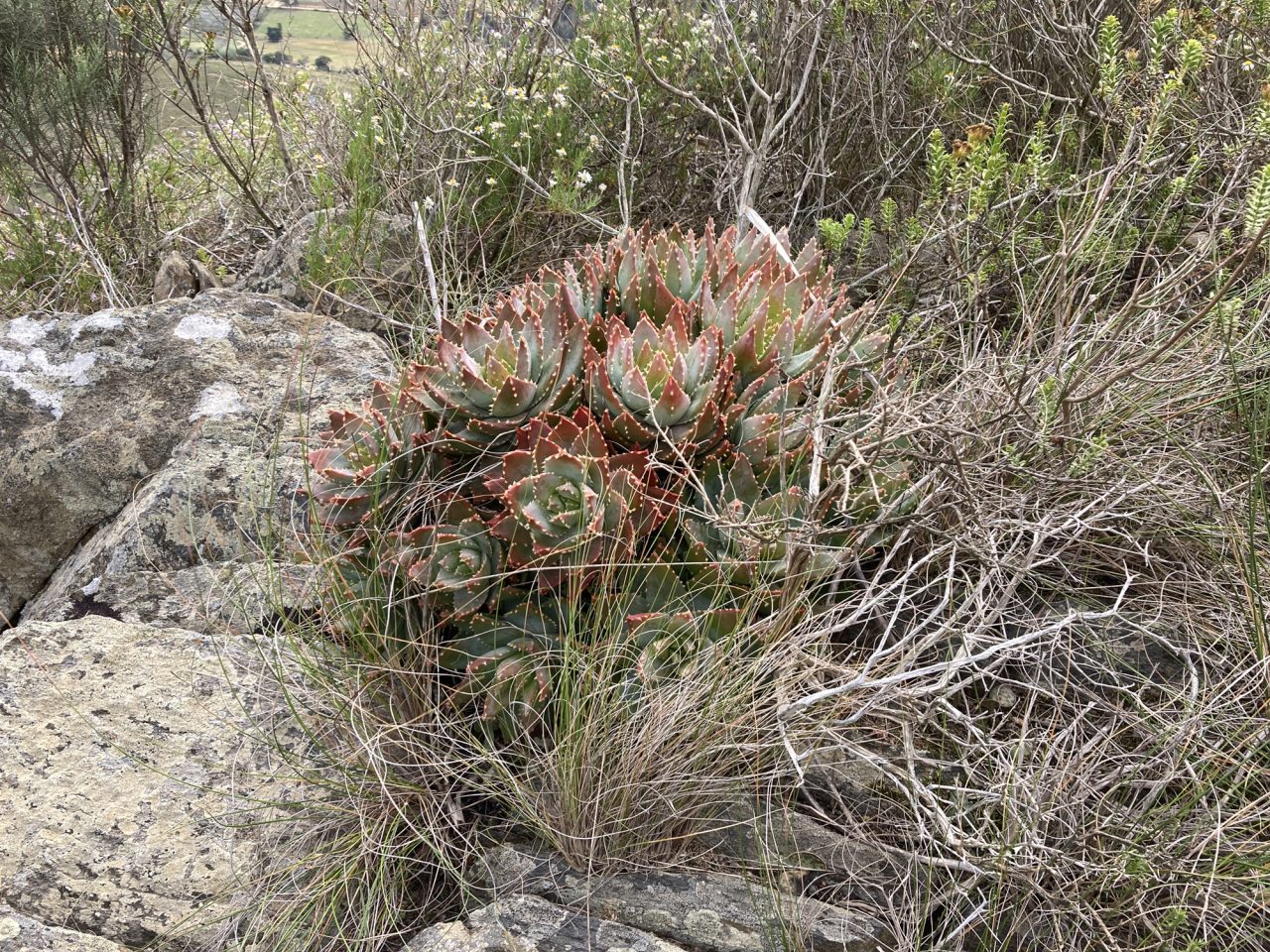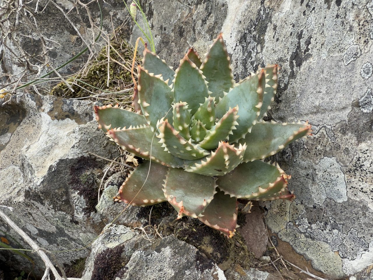 原产于南非西开普省沿海及内陆干旱地区,主要生长于沙质或石质土壤的灌木丛和岩石坡地。该地区降水少,夏季炎热,冬季温和,昼夜温差大。植株通常以孤立或小簇群落形式分布,与耐旱灌木植物共生,适应极端干旱环境。
