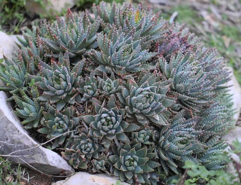 Aloe brevifolia,又称短叶芦荟,是一种原生于南非西开普省的矮生莲座状多肉植物,属于天门冬科(Asphodelaceae)芦荟属。它是一种生长缓慢的多肉植物,植株小巧紧凑,叶片短而厚实,形成密集莲座,通常直径为10–20厘米。该植物以其灰绿色带蓝色蜡质的叶片和冬季开出的黄色花序闻名,是南非半干旱地区典型的耐旱植物。Aloe brevifolia 的叶片排列紧密,可有效减少水分蒸发,适应炎热干燥的环境。