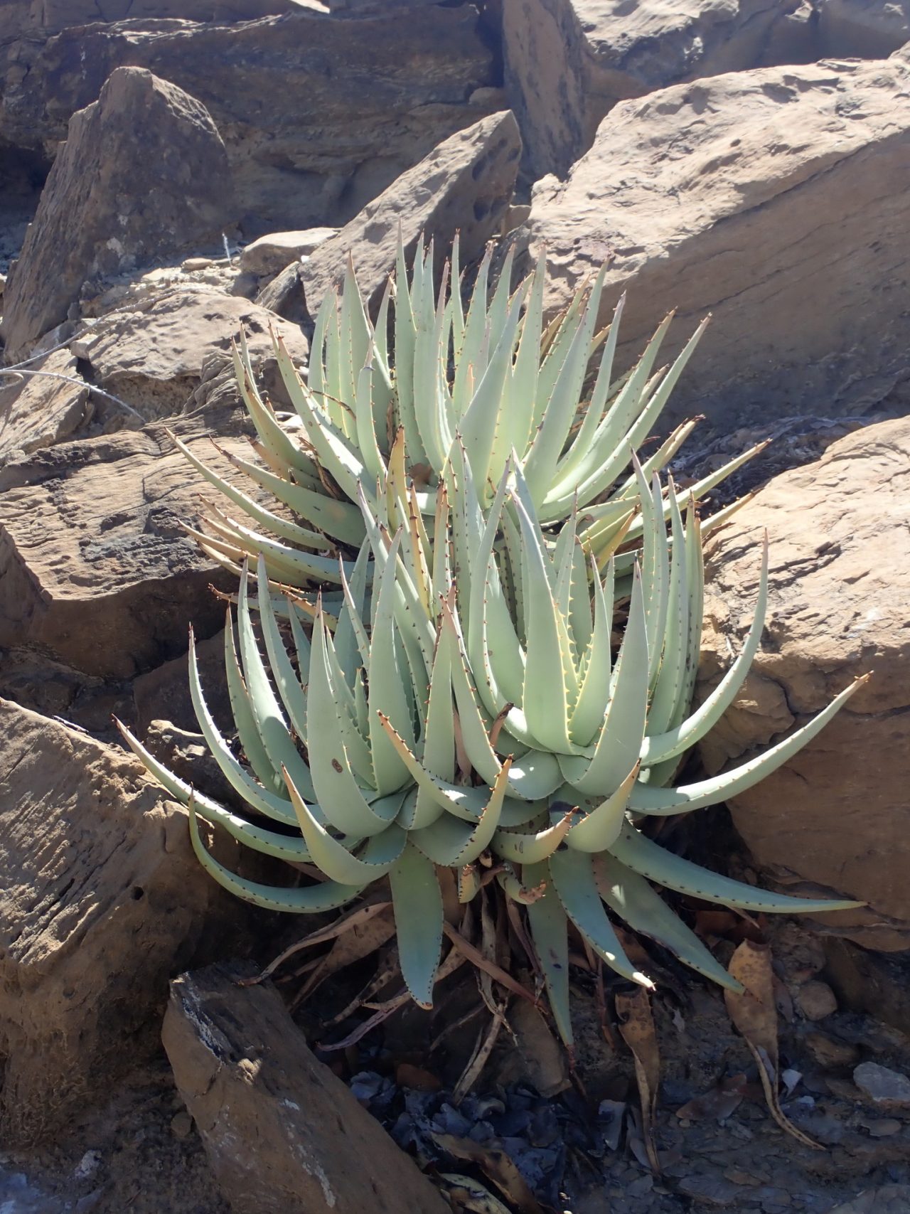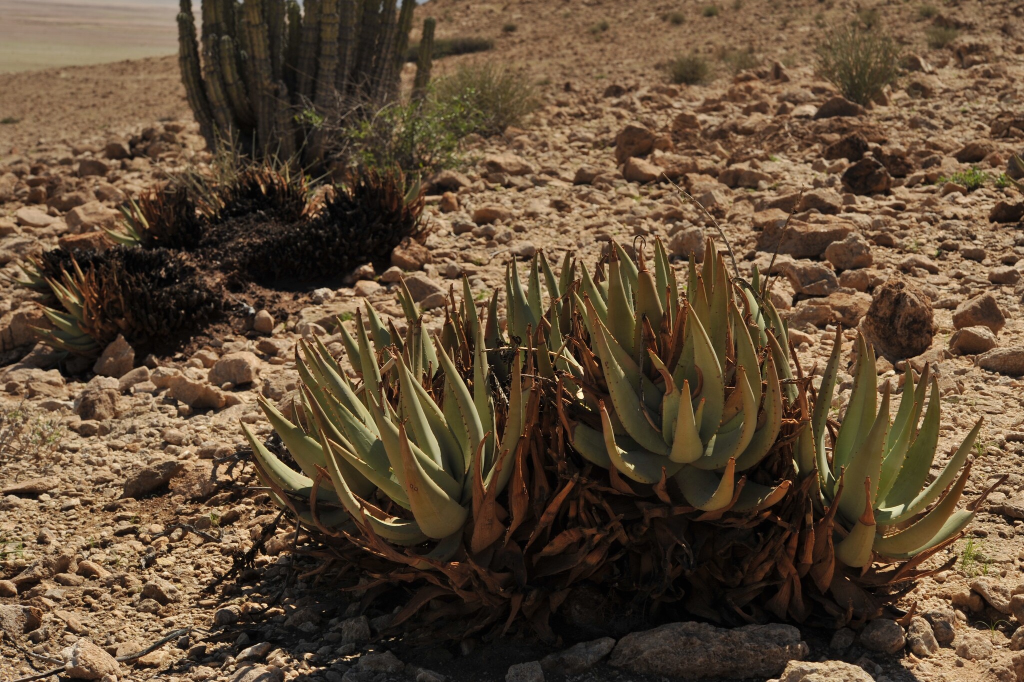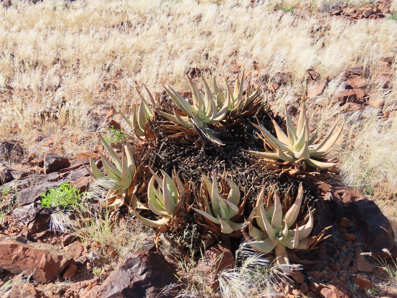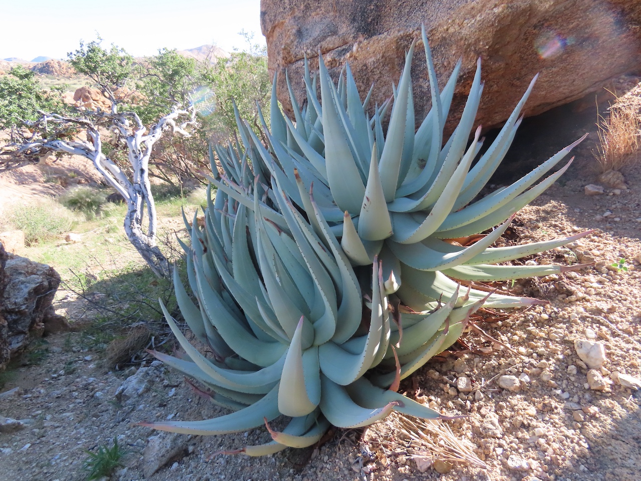 Aloe namibensis 是一种无茎或极短茎的直立芦荟,独株或偶见小群落: