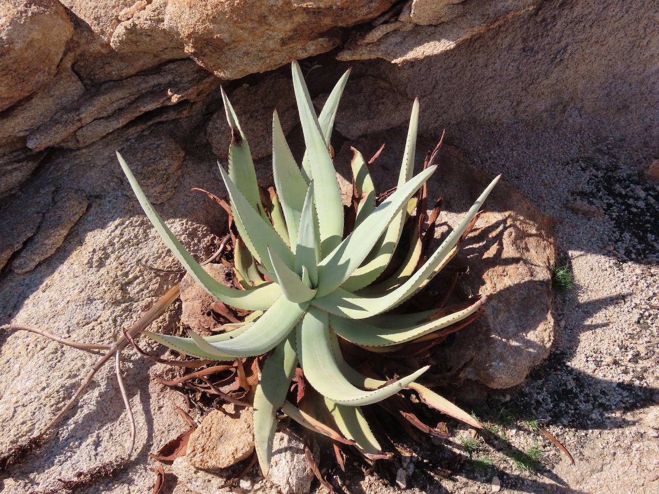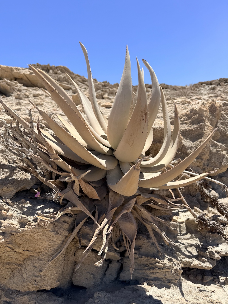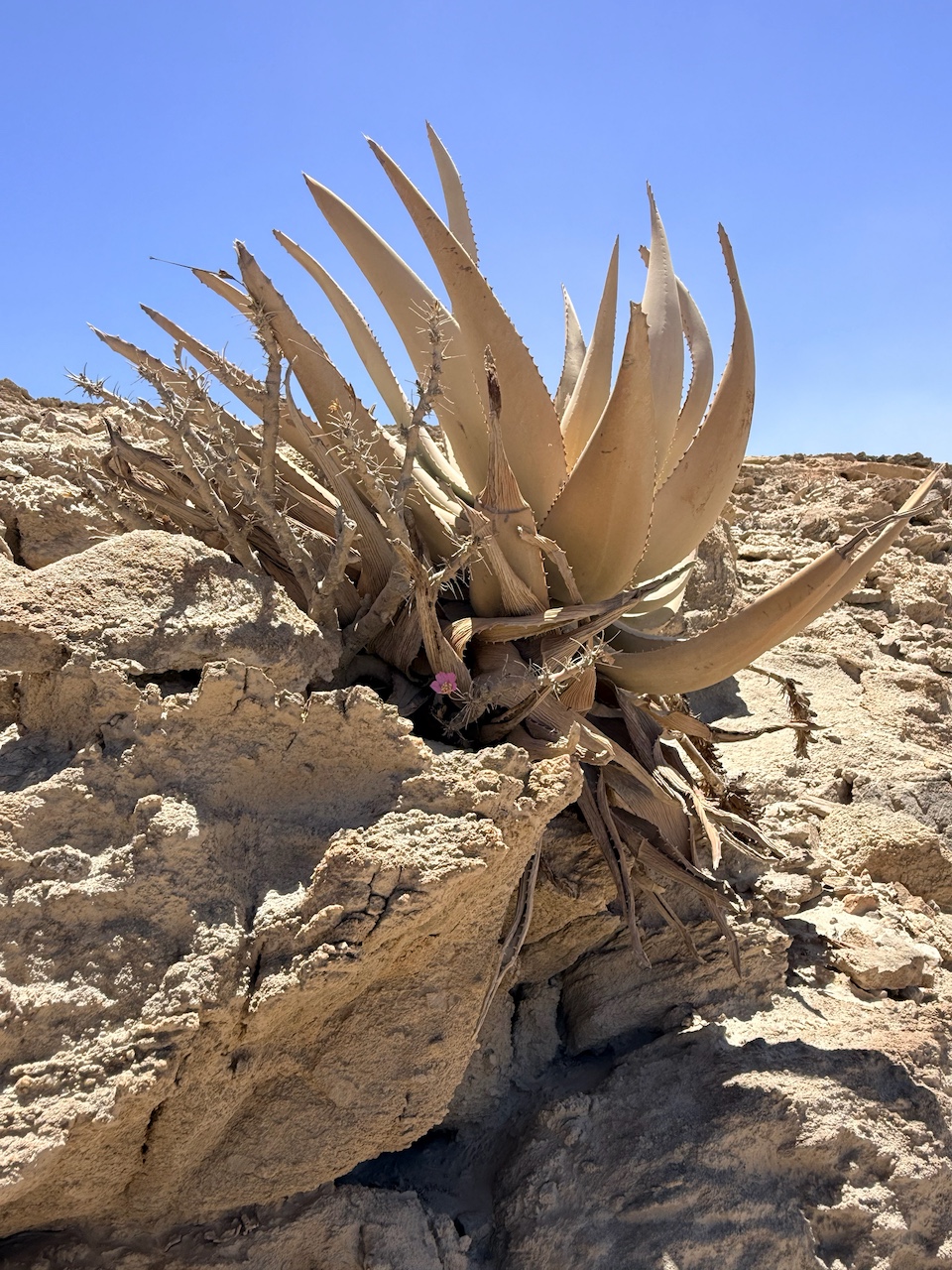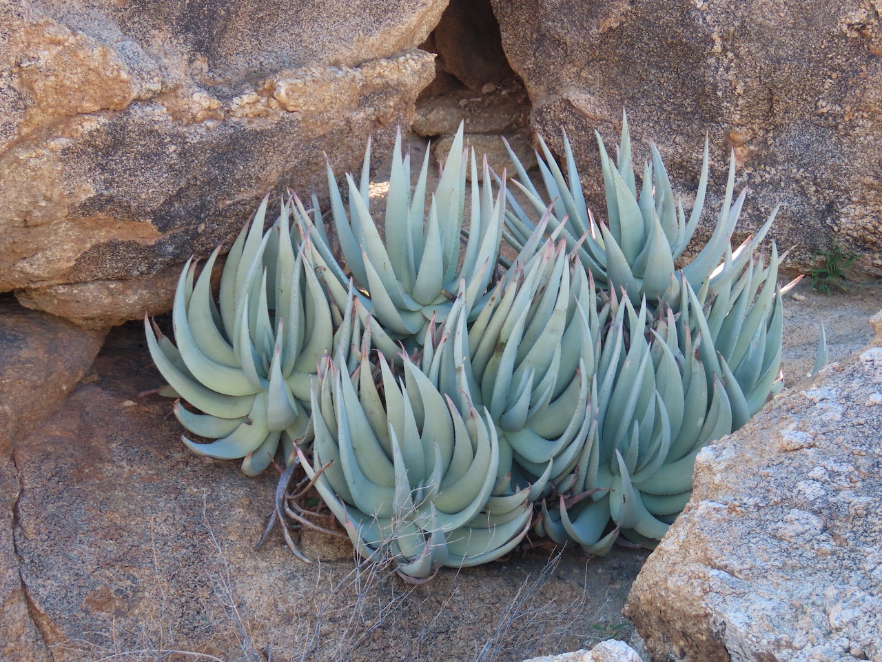 Aloe namibensis 是一种无茎或极短茎的直立芦荟,独株或偶见小群落: