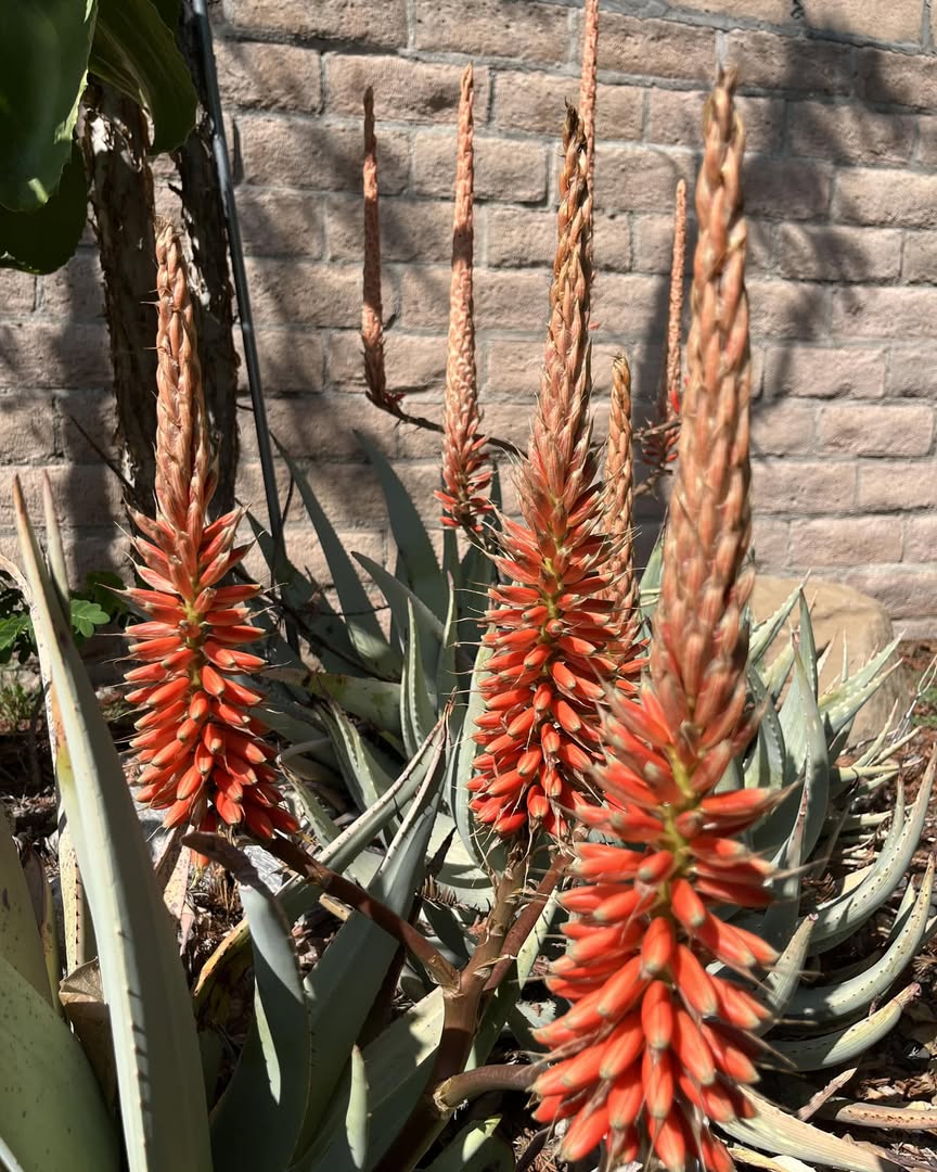 花序:花茎高可达约 1 m,分成 3–6 个直立的总状花序,花色常为珊瑚红至鲜红色,具明显观赏性。叶与整体感:相较于某些荒漠芦荟本种叶片更宽、更挺直,配合高直立花序显得宏观结构更“壮健”。