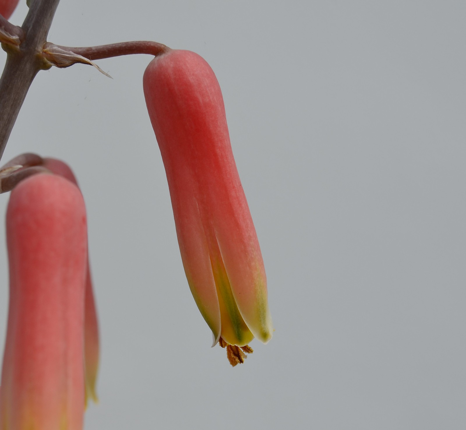 花序:花茎通常分枝(3–6 个分支)、高约 35–40 cm。总状花序松散,花朵常为珊瑚粉红至鲜红或橙红色,部分花朵在花口带淡黄色,有吸引传粉者的色彩对比。