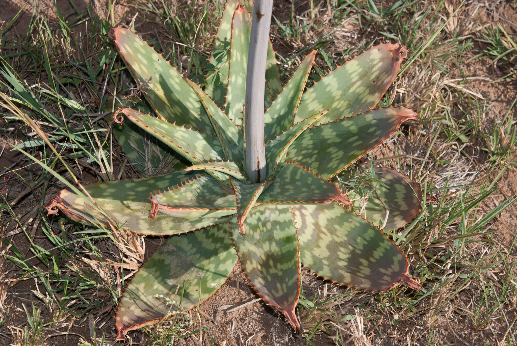 Aloe ammophila 是一种多年生耐旱多肉植物,整体呈莲座状或近无茎型: