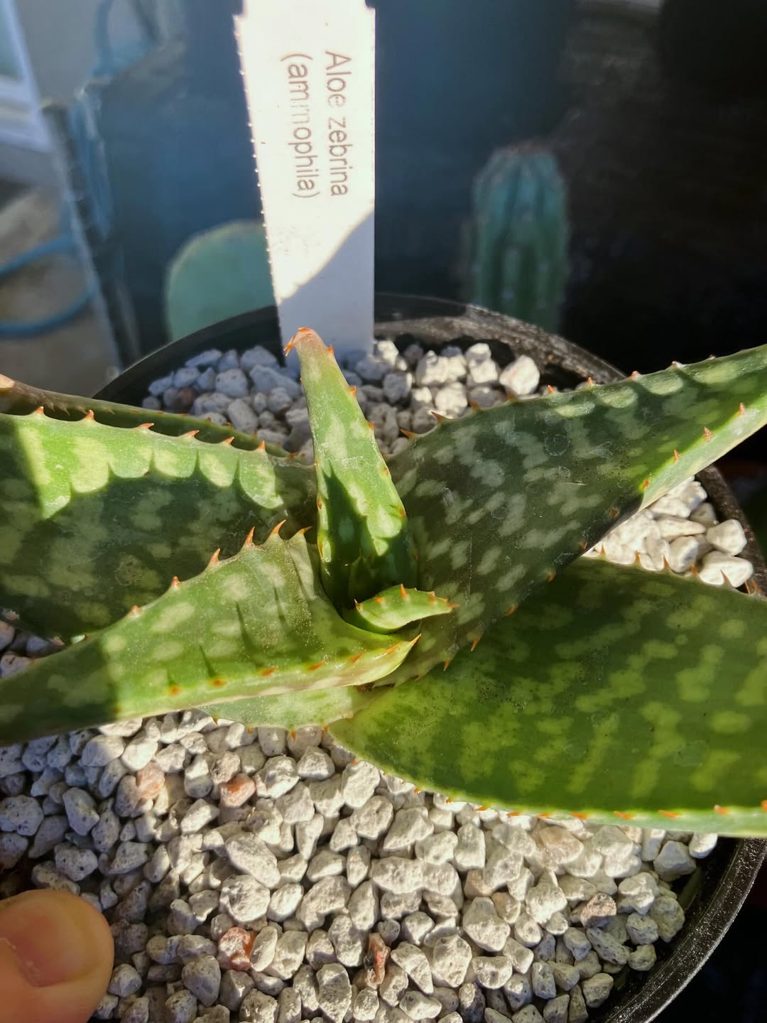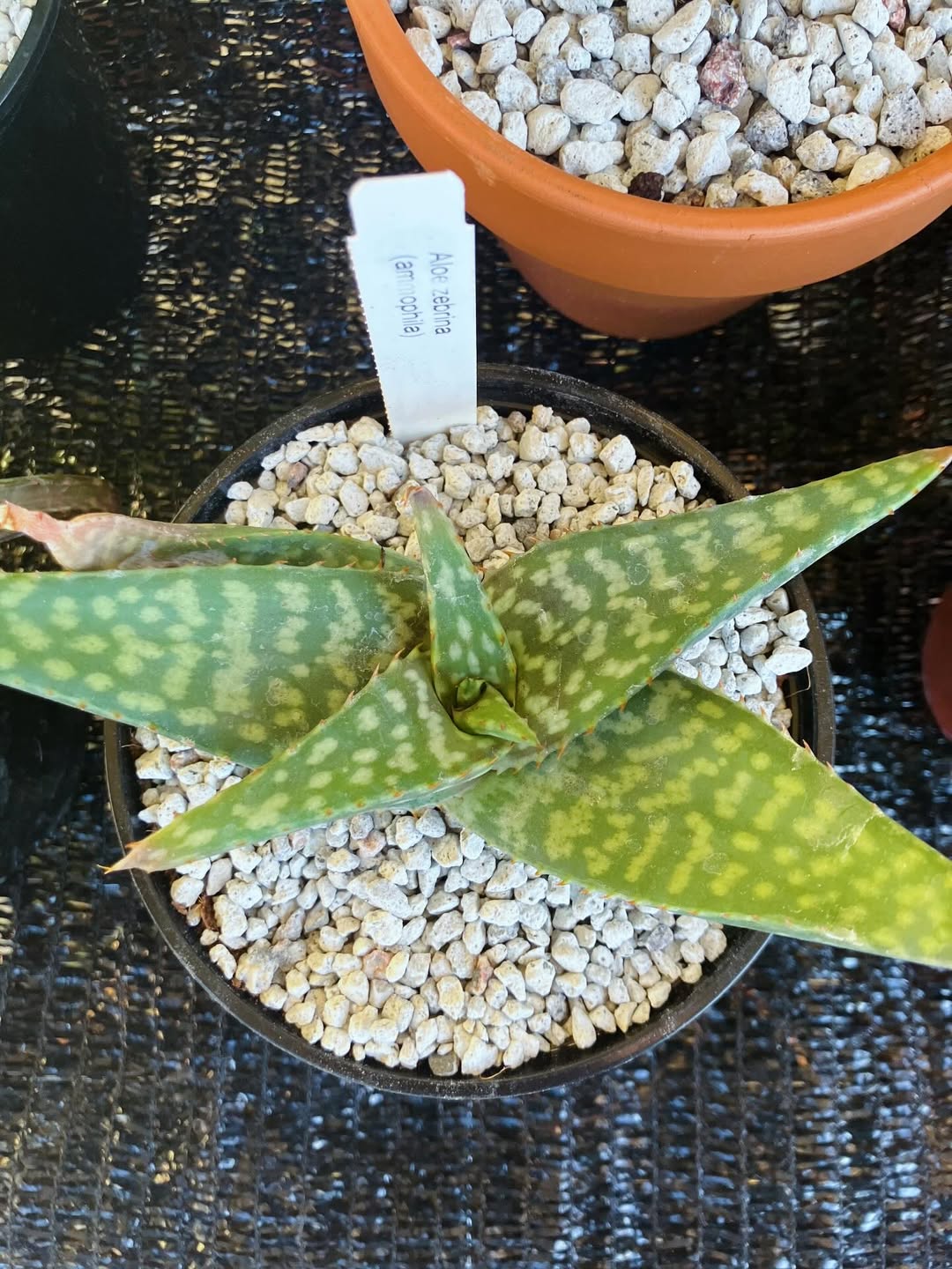 Aloe ammophila 的标准中文翻译为“沙生芦荟”。这是一个基于种加词含义的翻译(“ammophila”源自希腊语,意为沙生的或喜沙的,反映其偏好沙质栖息地),但该种目前被视为 Aloe zebrina(斑马芦荟)的同义名或密切相关种,在国际植物数据库中常归入后者(斑马芦荟的叶片有斑马纹般白色斑点)。