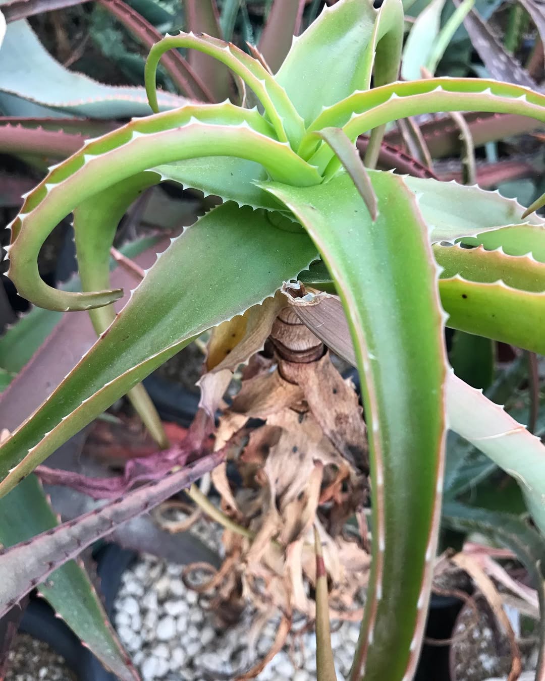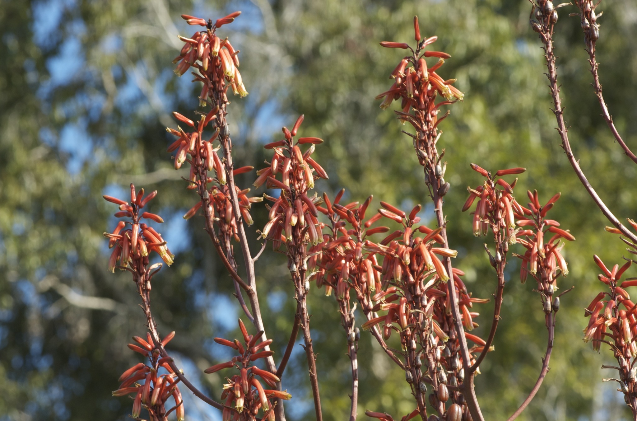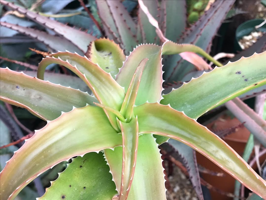 这种组合使得 Aloe antonii 在其原生干旱环境中既能有效储水,又能在花期呈现显眼的花序展示。