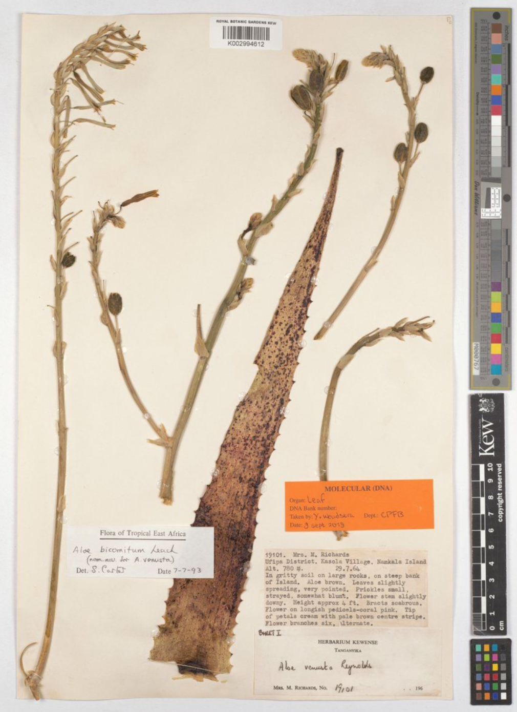 这种芦荟的叶色斑点与色泽搭配,以及鲜艳而复杂的花序,是识别这一物种的重要形态特征。