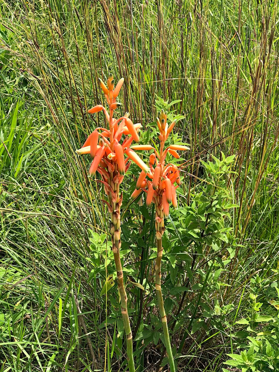 这种细长草叶、鲜绿色泽与明亮花色的组合,是识别 Aloe nuttii 的典型特征。