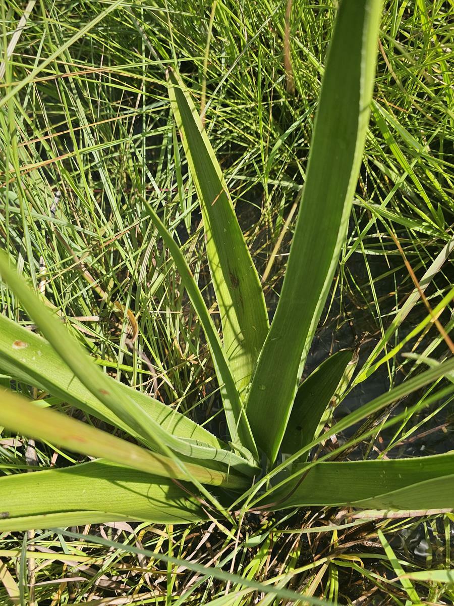 叶片形成莲座状或簇生排列,草状线形叶长约 40–50 cm,基部稍宽(约 4 cm),向叶尖逐渐变细;上表面有浅沟,叶色为鲜绿色明亮色。