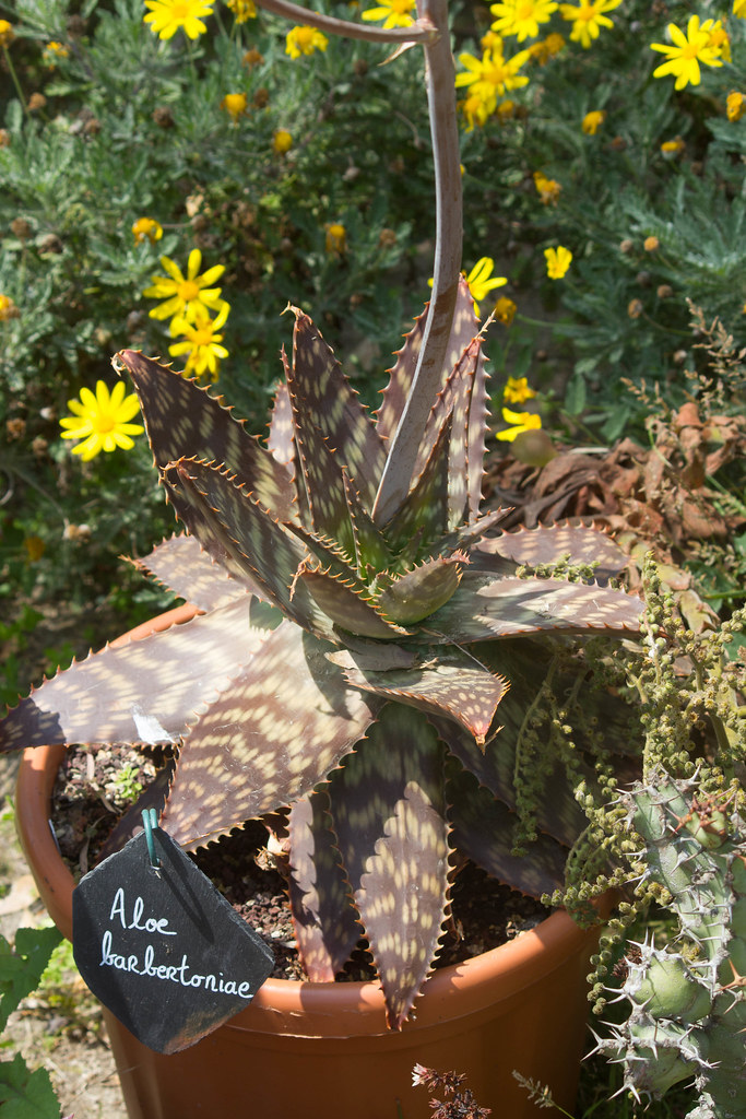 “Aloe barbertoniae” 这个种加词指向其发现的区域巴伯顿(Barberton)中心性植物群落,这是南非东北部独特的生物多样性热点。