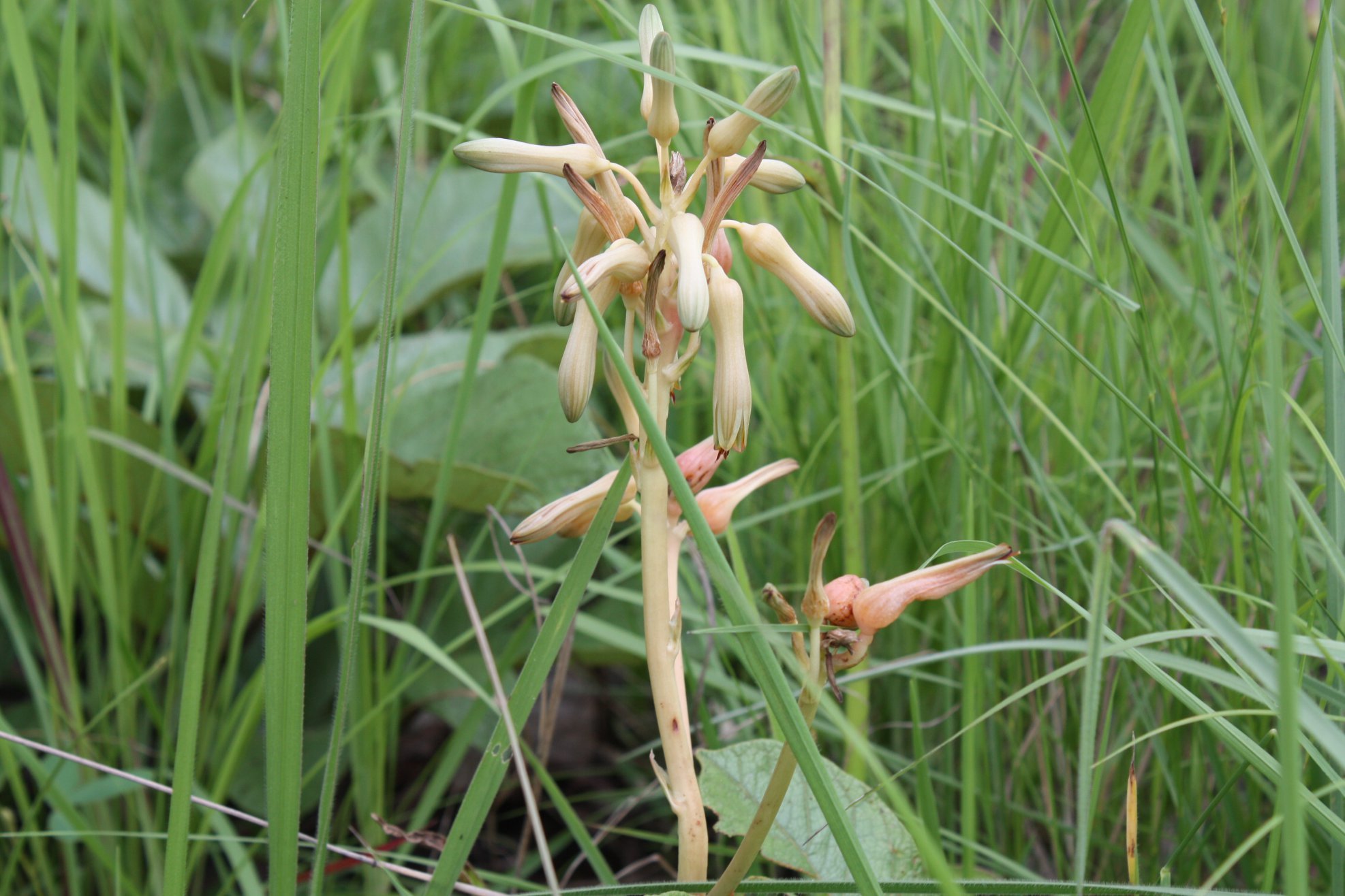 花穗细长呈圆柱状,颜色范围从浅黄至粉红或黄褐色,单朵花长约 40 mm。