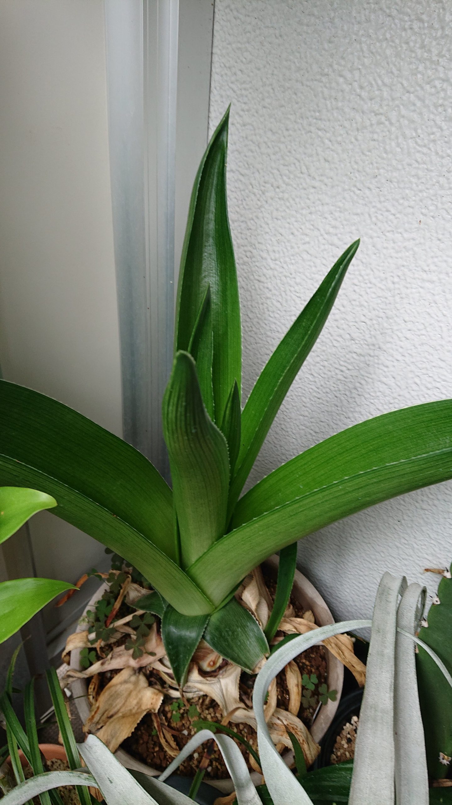 叶片呈椭圆披针形莲座状排列,叶色为鲜绿色带纵向细纹,长度约 50 cm,宽约 15 cm。