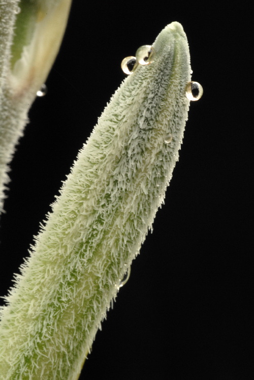 花穗为密集的圆柱花序,花朵呈亮丽的柠檬黄色,花冠管状,花长约 28–35 mm。