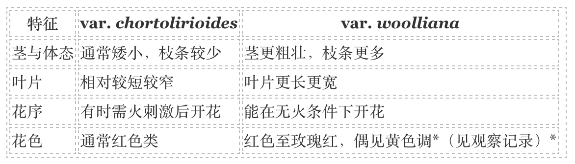 与典型变种的比较(Comparison with var. chortolirioides)