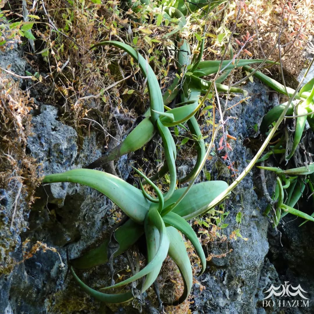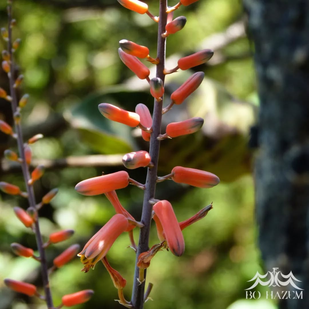 这种直立茎、细长叶与橙红花的组合,是区分本种与其他近缘阿拉伯芦荟的关键形态要素。