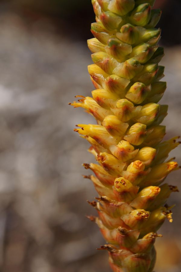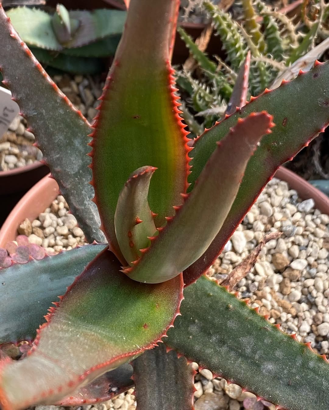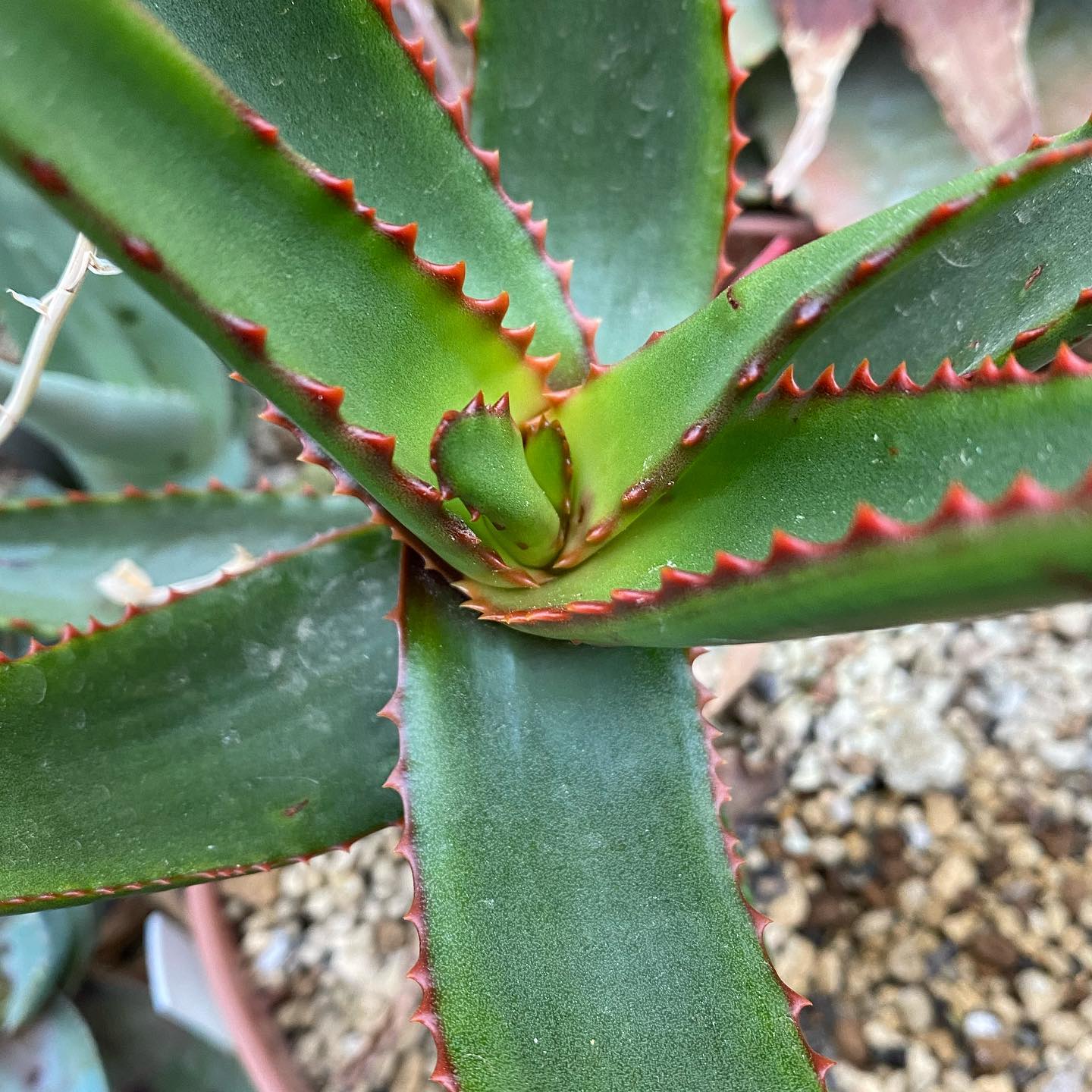 这种深绿叶片配合微橙黄渐变的花色是本种区分于其它芦荟的重要形态依据。