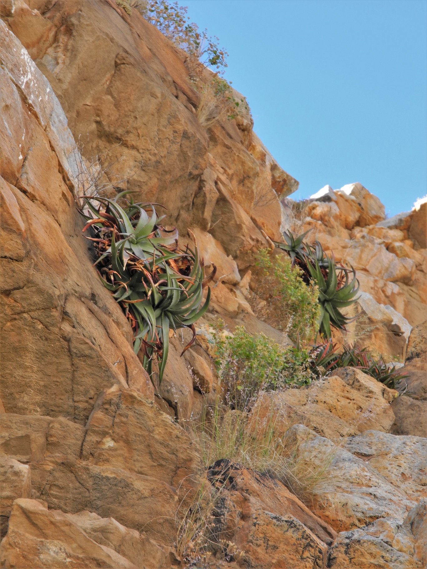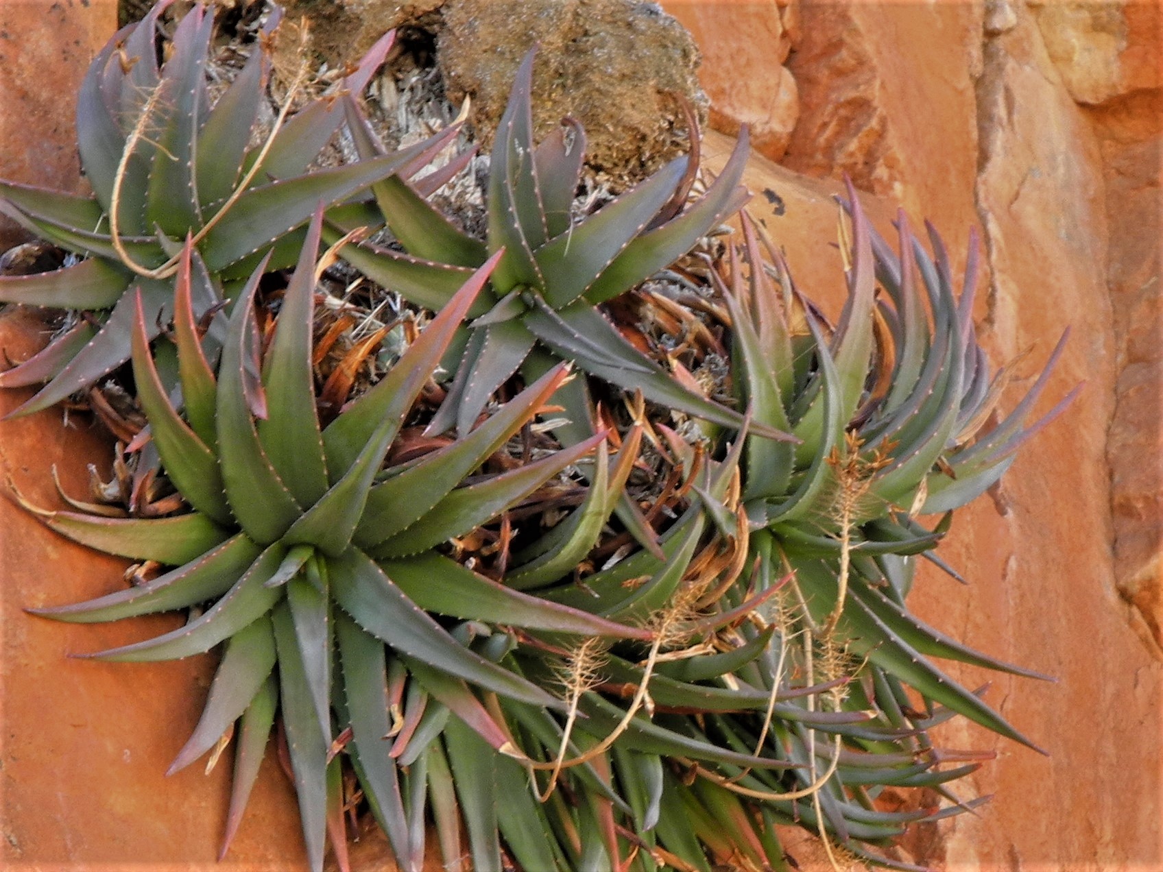 Aloe dabenorisana 是一种多年生、群生型的干旱多肉植物,专门适应峭壁与岩缝生态:
