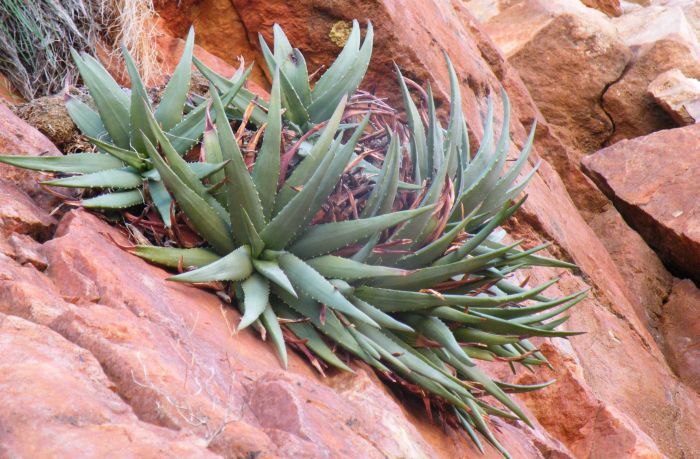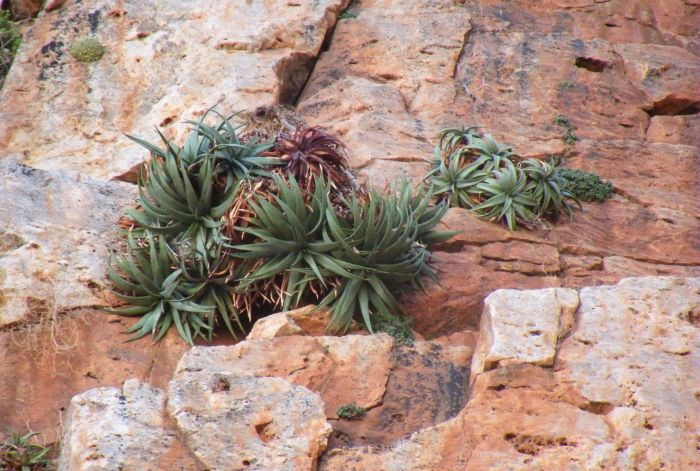 在这六种芦荟中,有三种仅生长在陡峭的悬崖上,梅氏芦荟和帕维尔卡芦荟的长茎下垂,是典型的悬崖攀援植物。米氏芦荟(Aloe mitriformis)也生长在悬崖上,但并不局限于悬崖,其茎也呈下垂状。