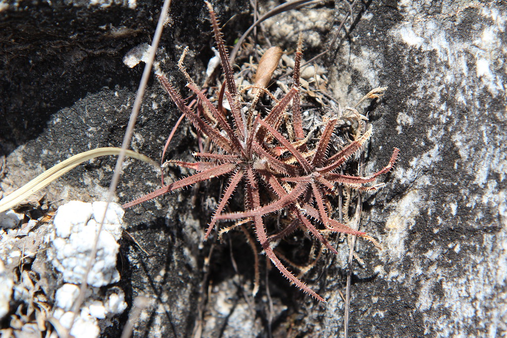 Aloe droseroides 是一类迷你型真芦荟(dwarf aloe),在野外与类似体型的马达加斯加种(如 Aloe inexpectata)共同存在于岩质斜坡上,是马岛芦荟多样性的一部分。