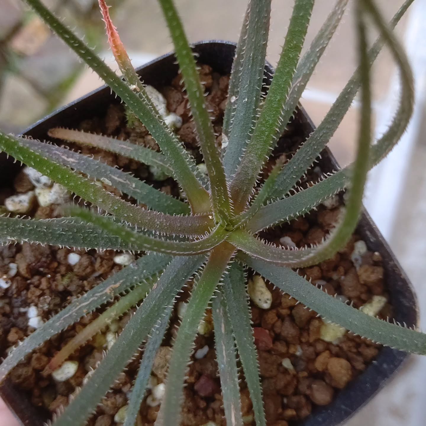 叶片呈狭长披针形,排列呈螺旋莲座。(