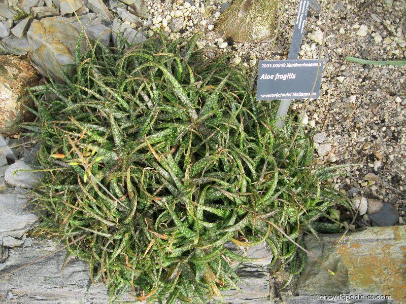 Aloe fragilis 是一种芦荟属(Aloe)多肉植物,隶属于天门冬科(Asphodelaceae)。该物种由植物学家 John Jacob Lavranos 与 R. Röösli 于 1994 年在 Cactus and Succulent Journal 上首次正式描述发表,并为权威植物系统资源认定的有效学名。其拉丁种加词 fragilis 意为“脆弱的、易碎的”,指植株莲座或枝体相对较脆弱的结构