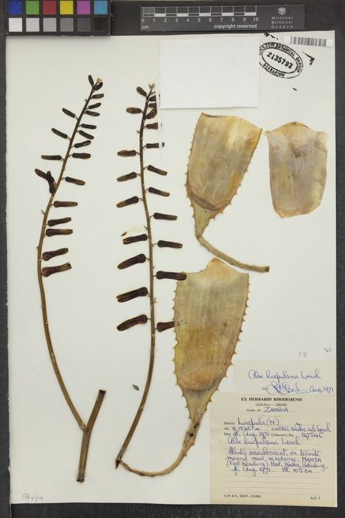 Aloe luapulana 是一种非洲南部原生的芦荟属(Aloe)多肉植物,属于天门冬科(Asphodelaceae)。该物种由植物学家 Leslie C. Leach 于 1972 年发表描述,学名 Aloe luapulana L.C.Leach 被植物分类权威资源接受为有效名称。它属于多年生耐旱草本,适应排水良好、季节性干旱的岩石草地生态。