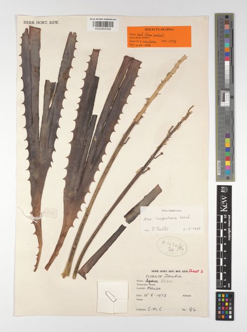 葡萄牙语维基百科 — Aloe luapulana(基本分类与物种概况). (维基百科)