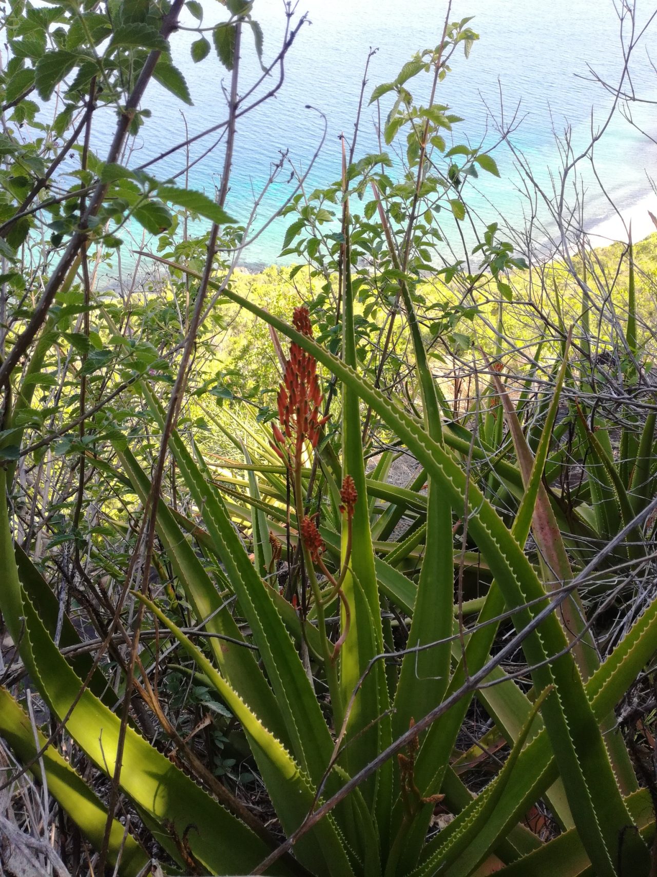 Aloe mayottensis 具有典型的多肉叶片和分枝茎干特征,与许多岛屿芦荟相比,在一些形态上独具特色: