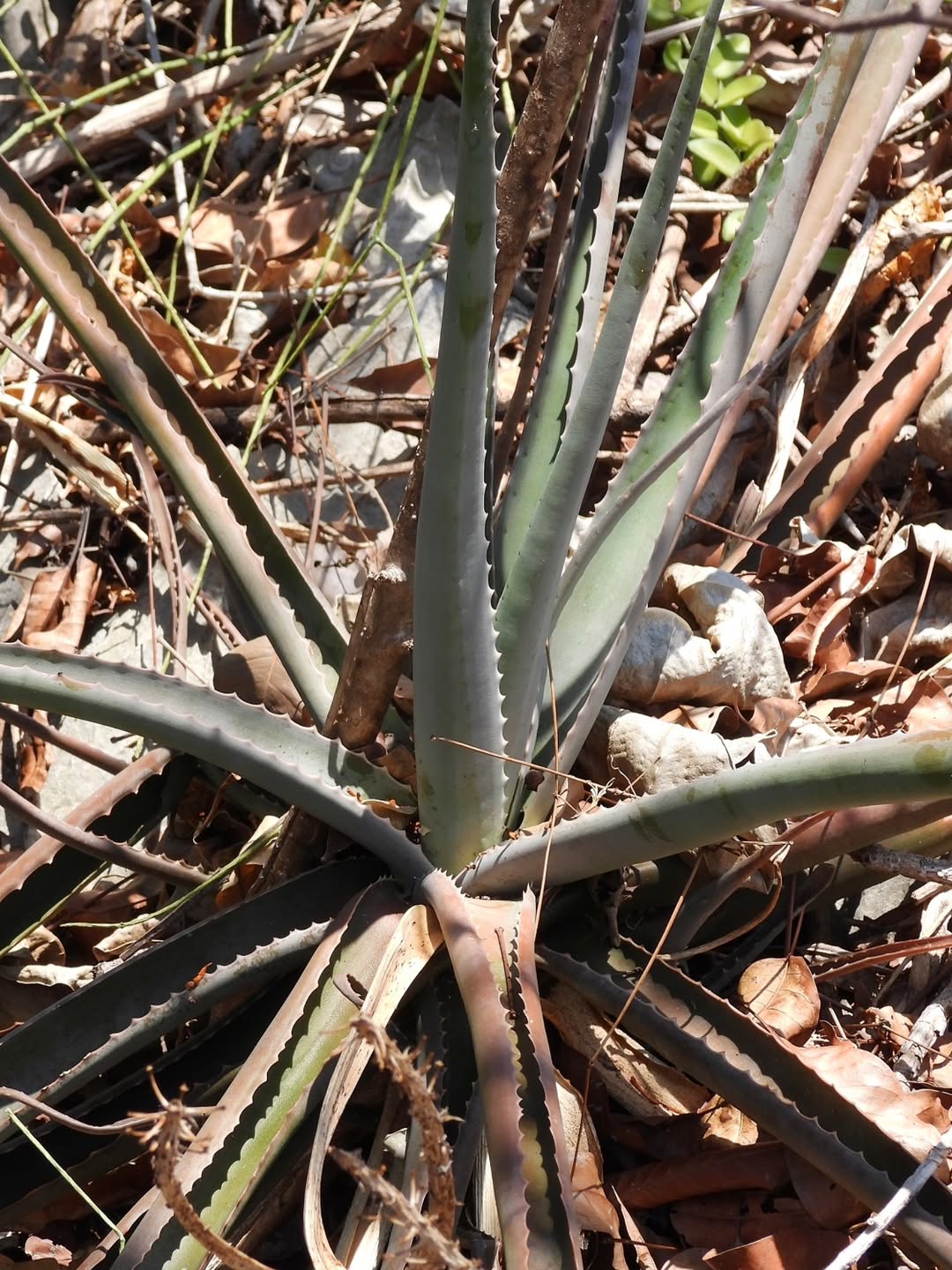 叶缘具白色或浅色齿刺,齿尖褐色,齿长约 2 mm、间距 5–15 mm。