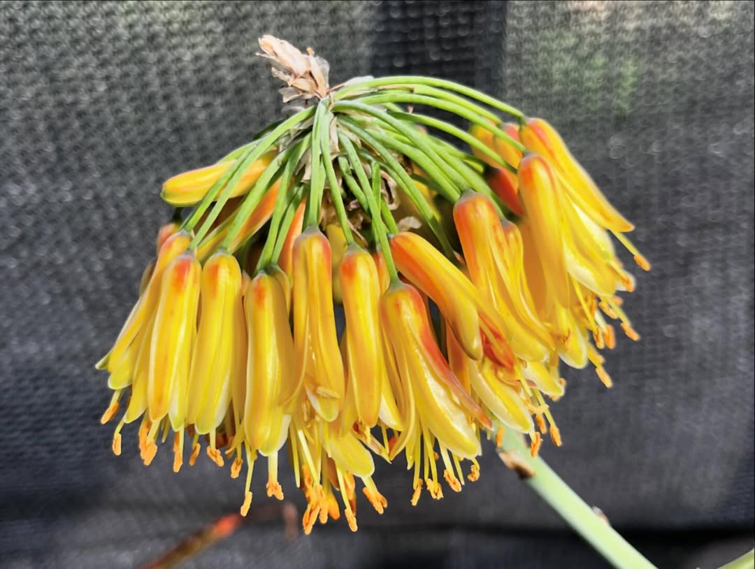 花朵:花常呈黄色(成熟时),在花蕾期可能显红色调;单朵花约 32 mm 长,花被片基部近不融合,雄蕊和雌蕊几乎不伸出。