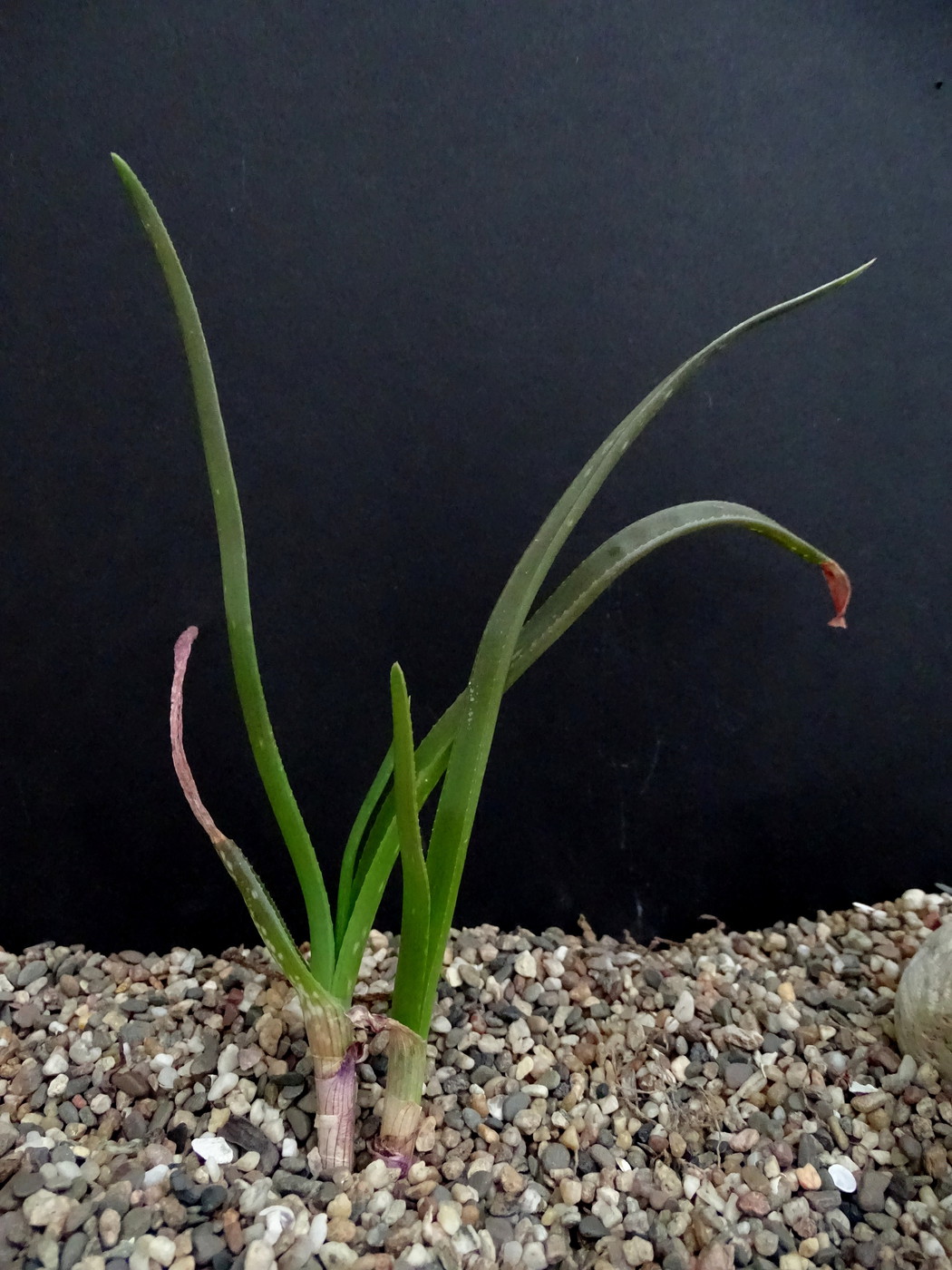 叶片呈线形披针形,长约 30–40 cm、宽约 1.5 cm,色泽为深绿,干旱时可能转为暗紫色。叶基部两面可见浅色斑点,尤其下表面更明显。叶缘具微小白色齿刺。