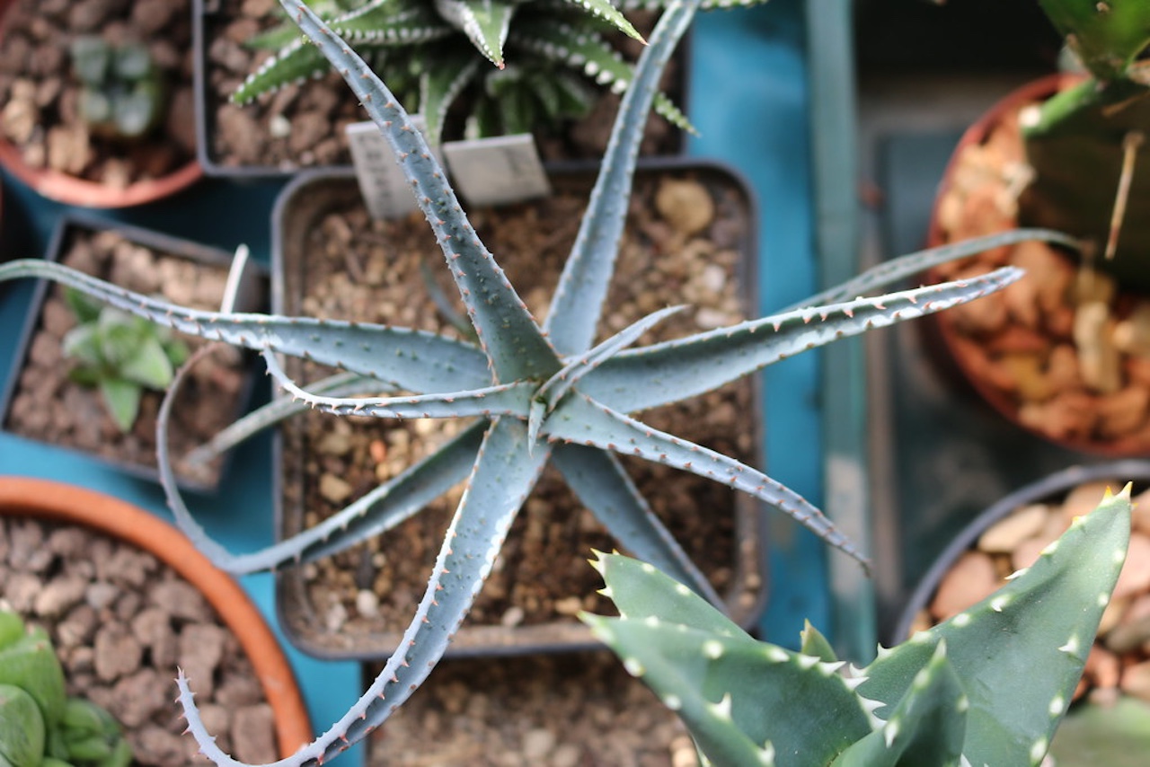 灰绿色叶片呈莲座状,边缘有白色齿刺;