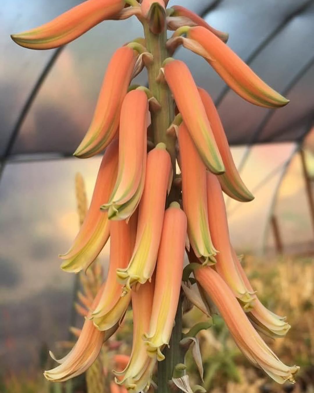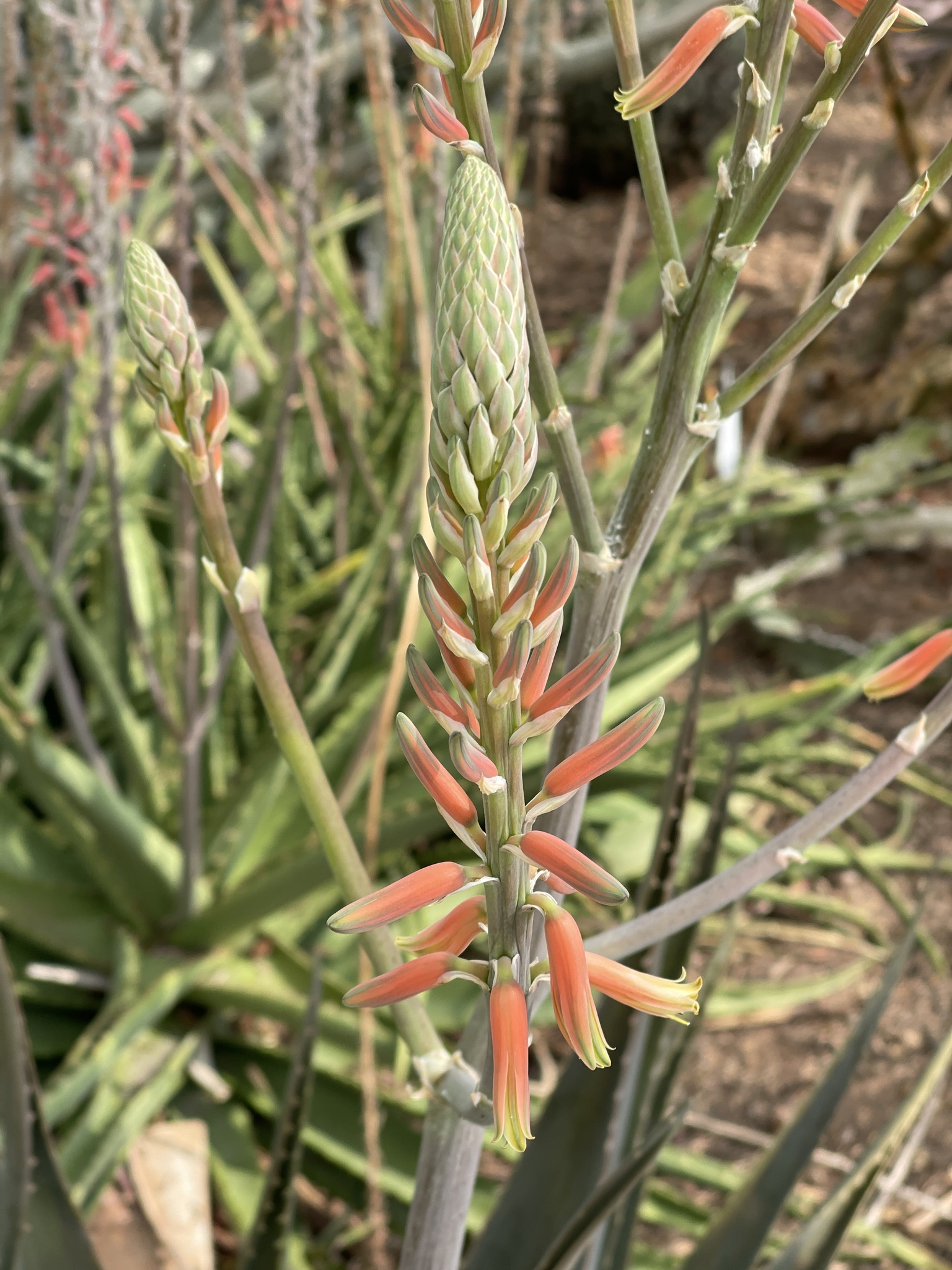 直立,多分枝花梗,花簇为典型芦荟管状花,花色多呈橙红或橙色调(不同来源记录一致)。