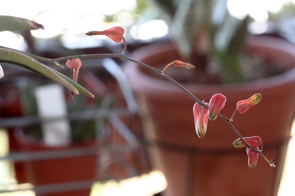 细长且散生花序,花色橙至粉红色。