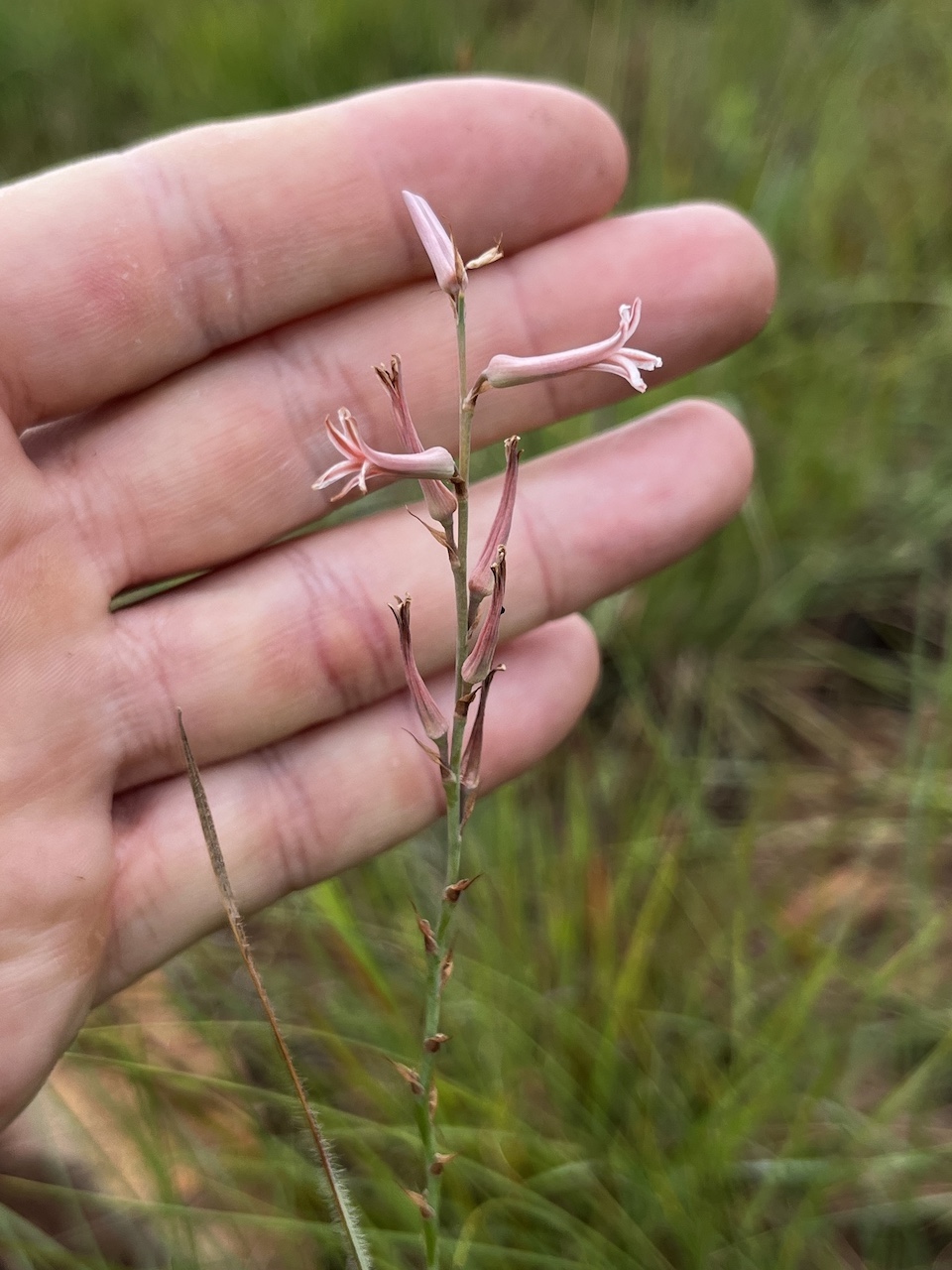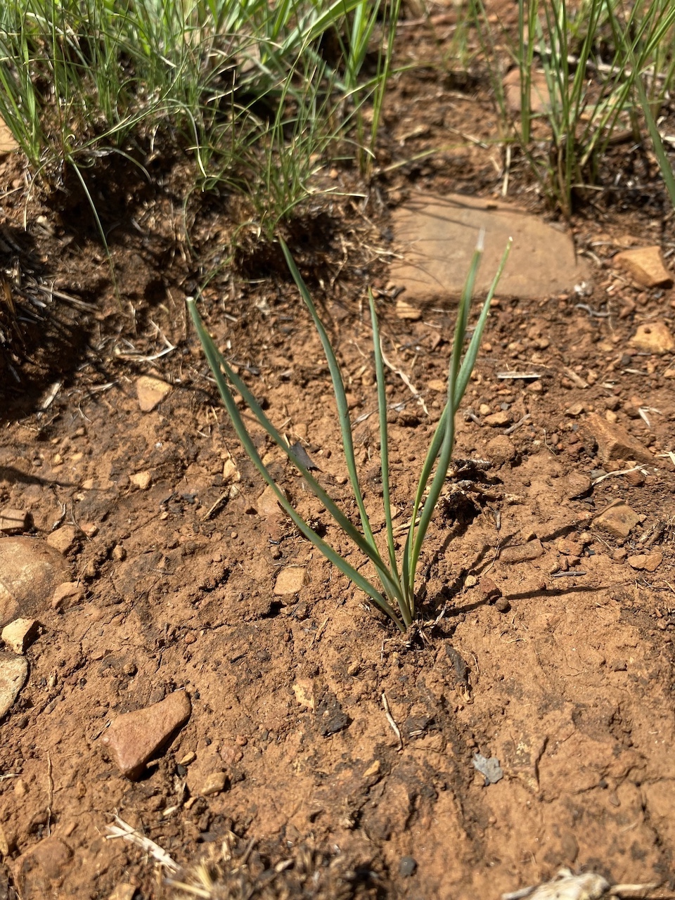植株基部形成球状地下茎(bulb),直径约 7–8 mm,外被薄膜状鳞片。