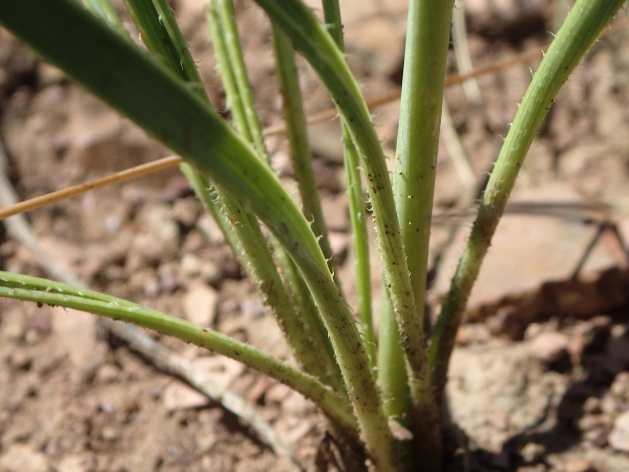 叶片通常数片至少量,线形至极窄披针形,长约 10–15 cm,宽约 1–2 mm,叶基部沟状,向尖端变平。