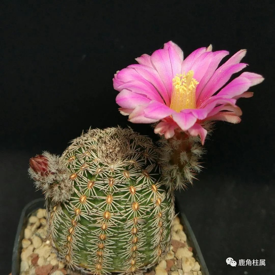 鹿角柱属紫红玉变种,刺红玉(罗默紫红玉,变种名来自于植物学家罗默Roemer)。在紫红玉adustus这个种下面的变种群体中,因为密刺、长长的中刺和引人注目的大粉花别具一格。